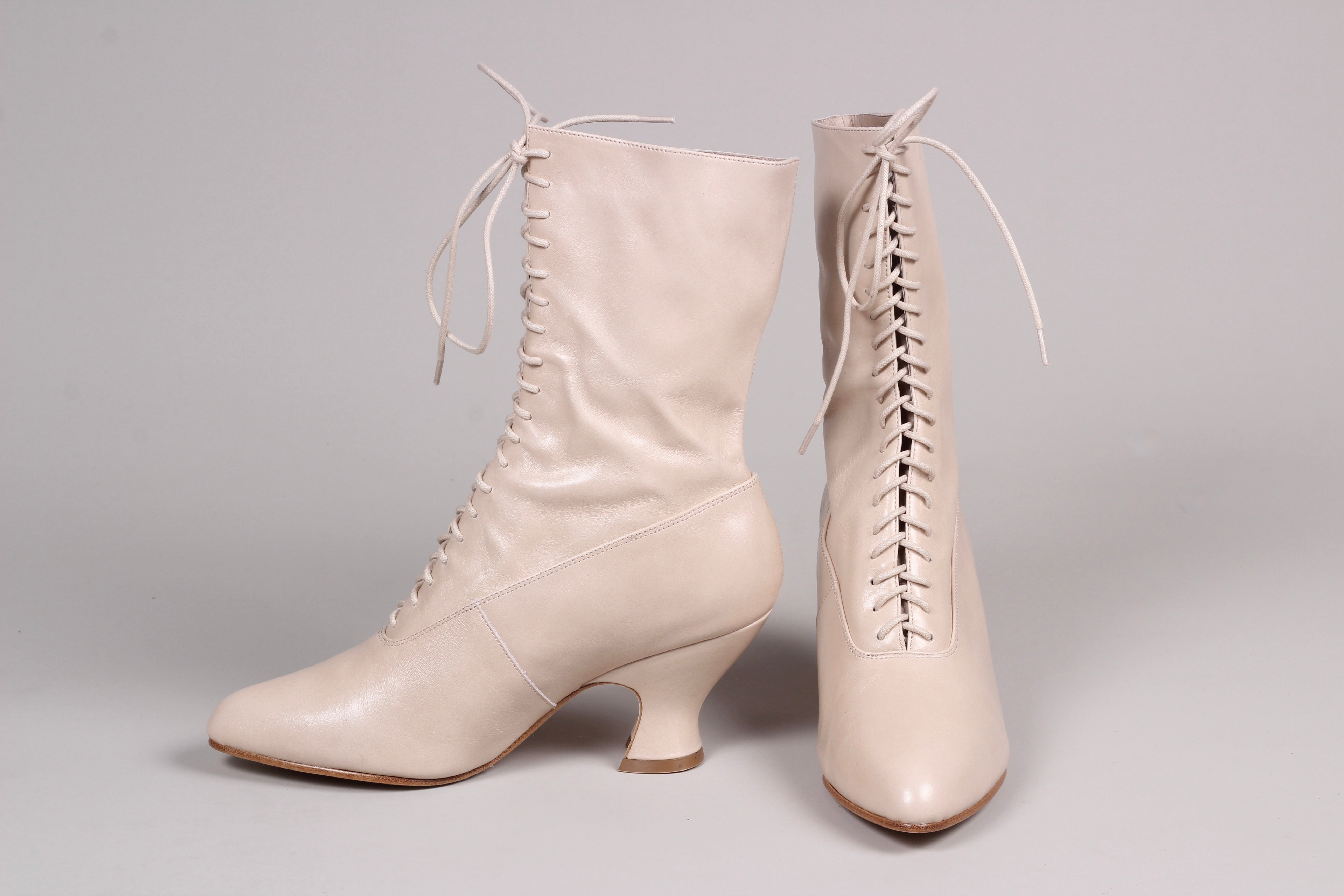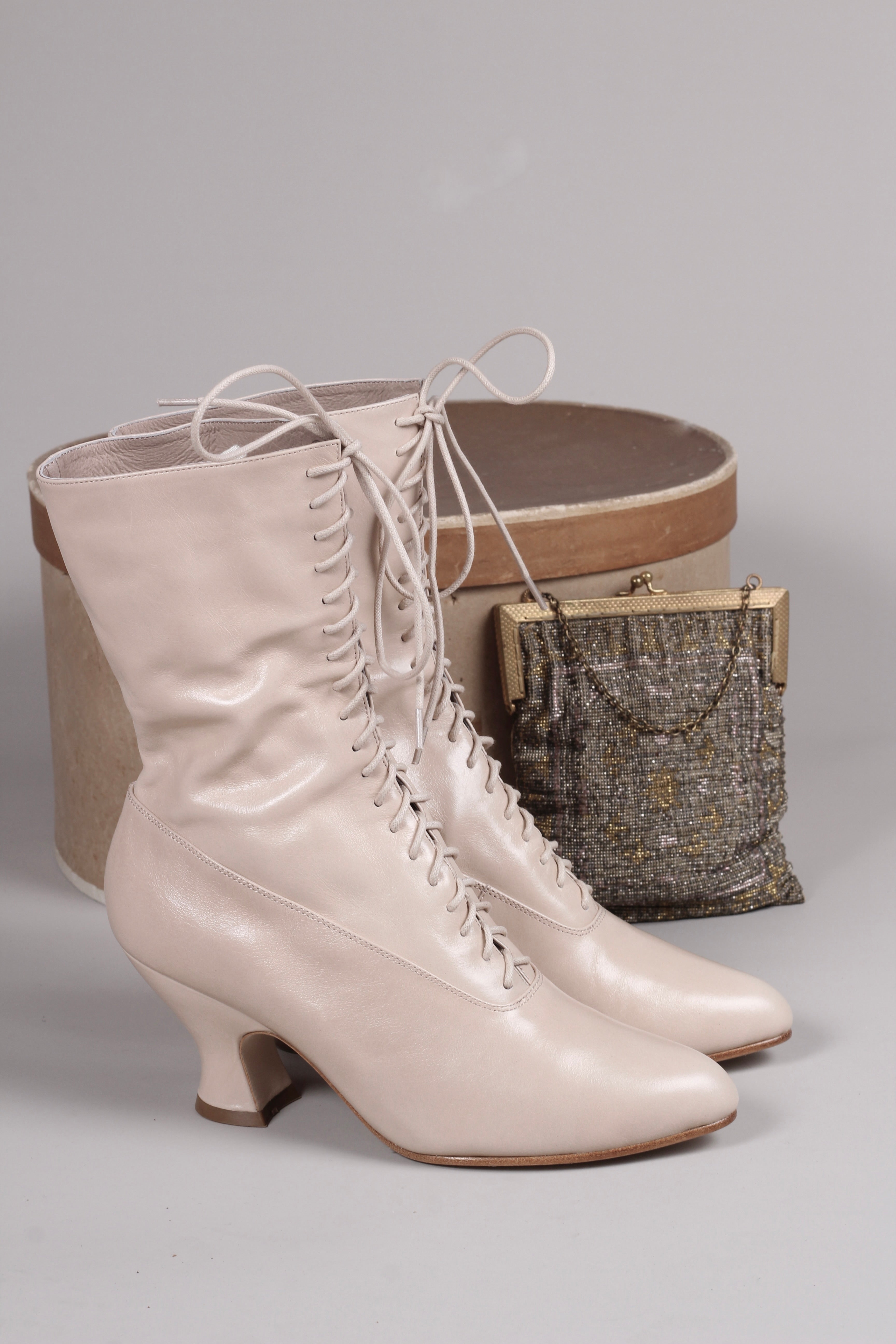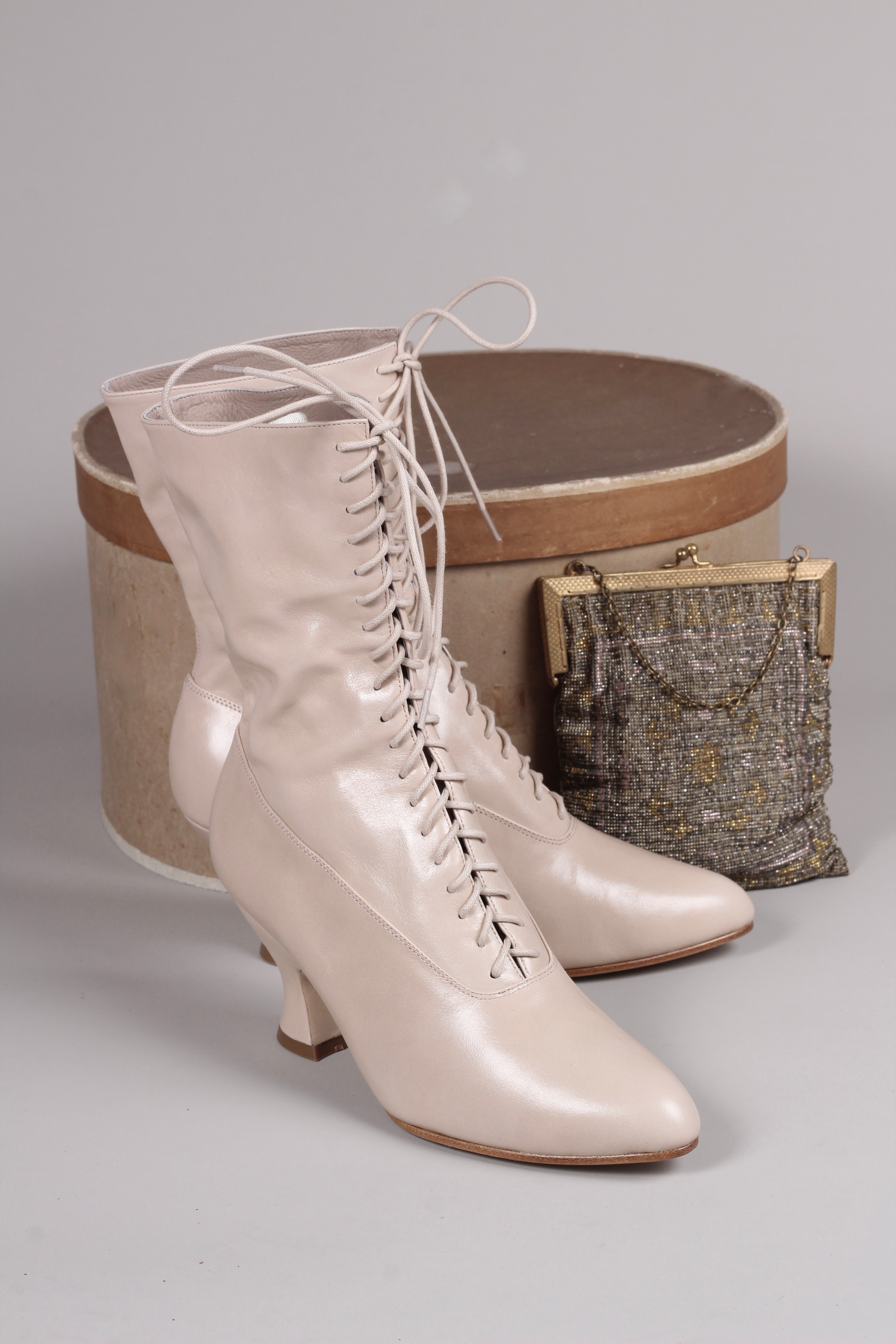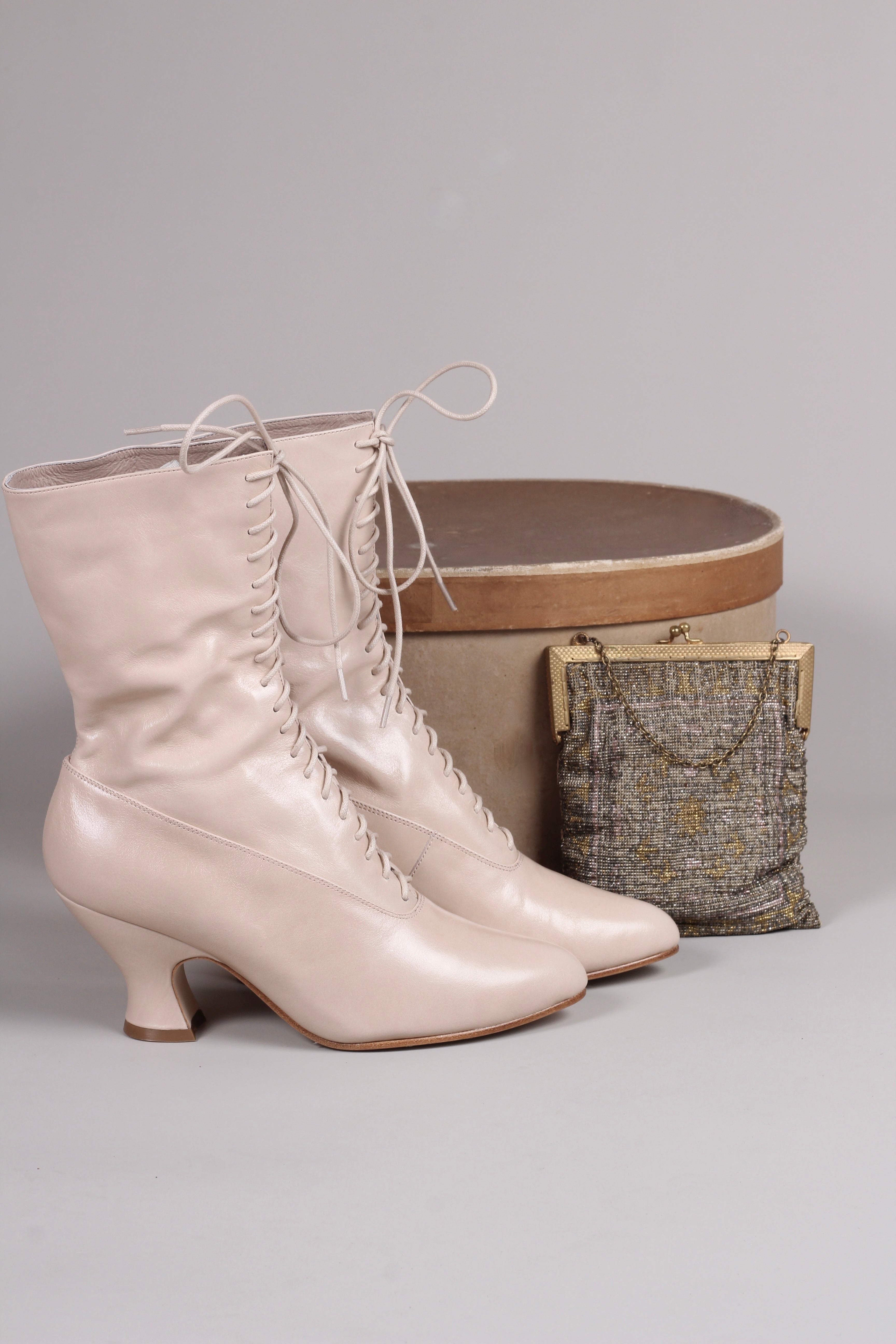 Edwardiansk snørestøvle med pompadour hæl, 1900-1915 - Cream - Rose