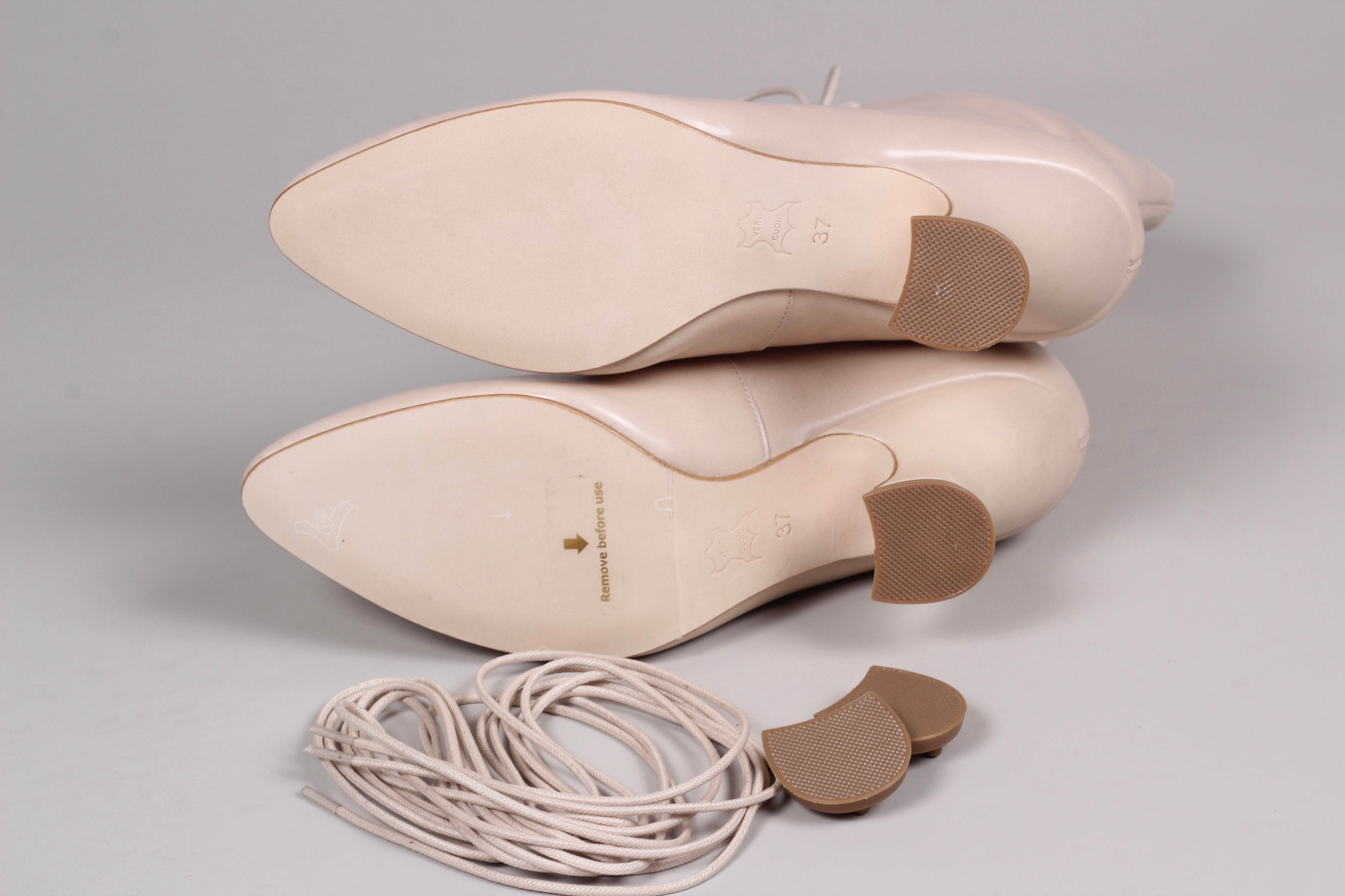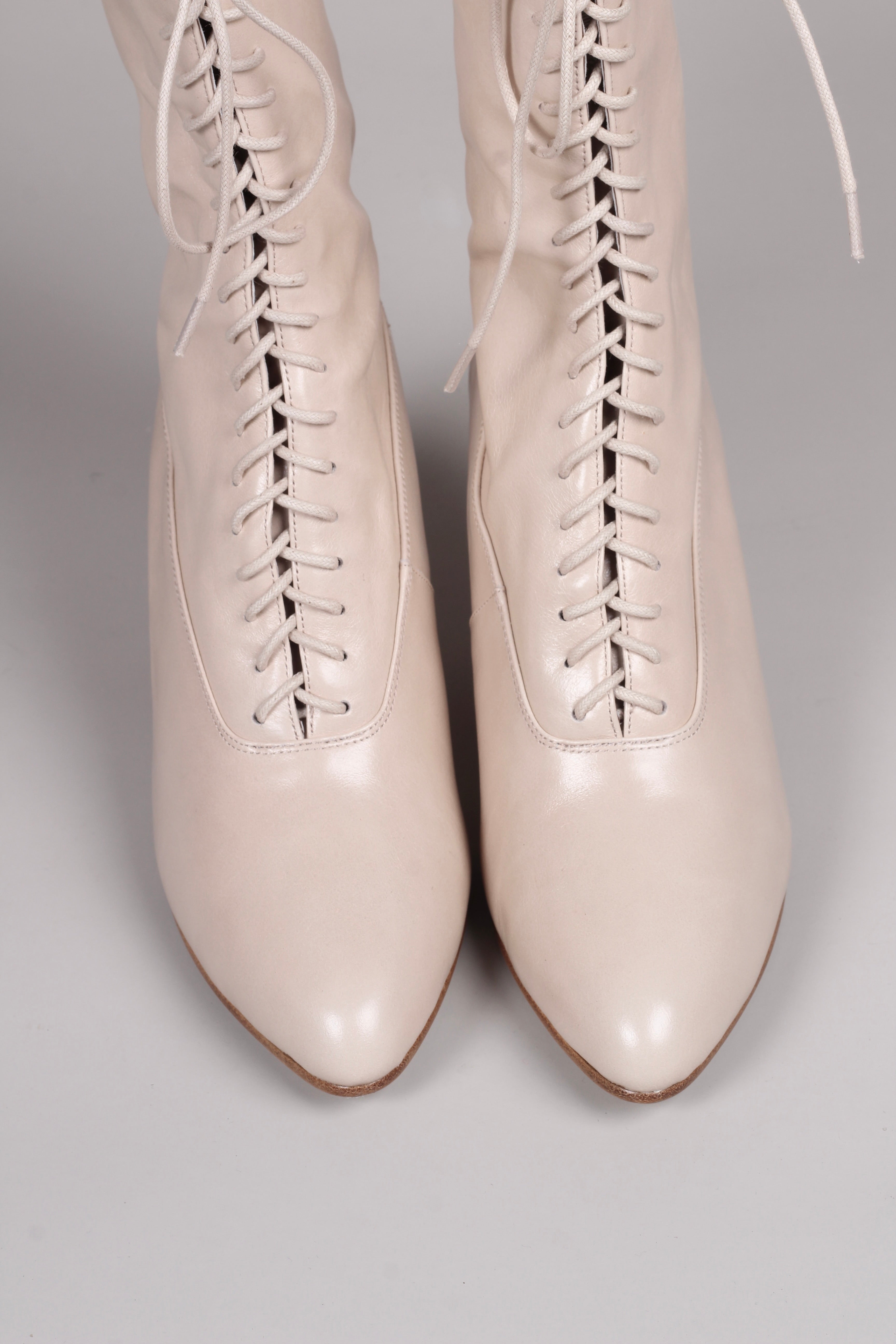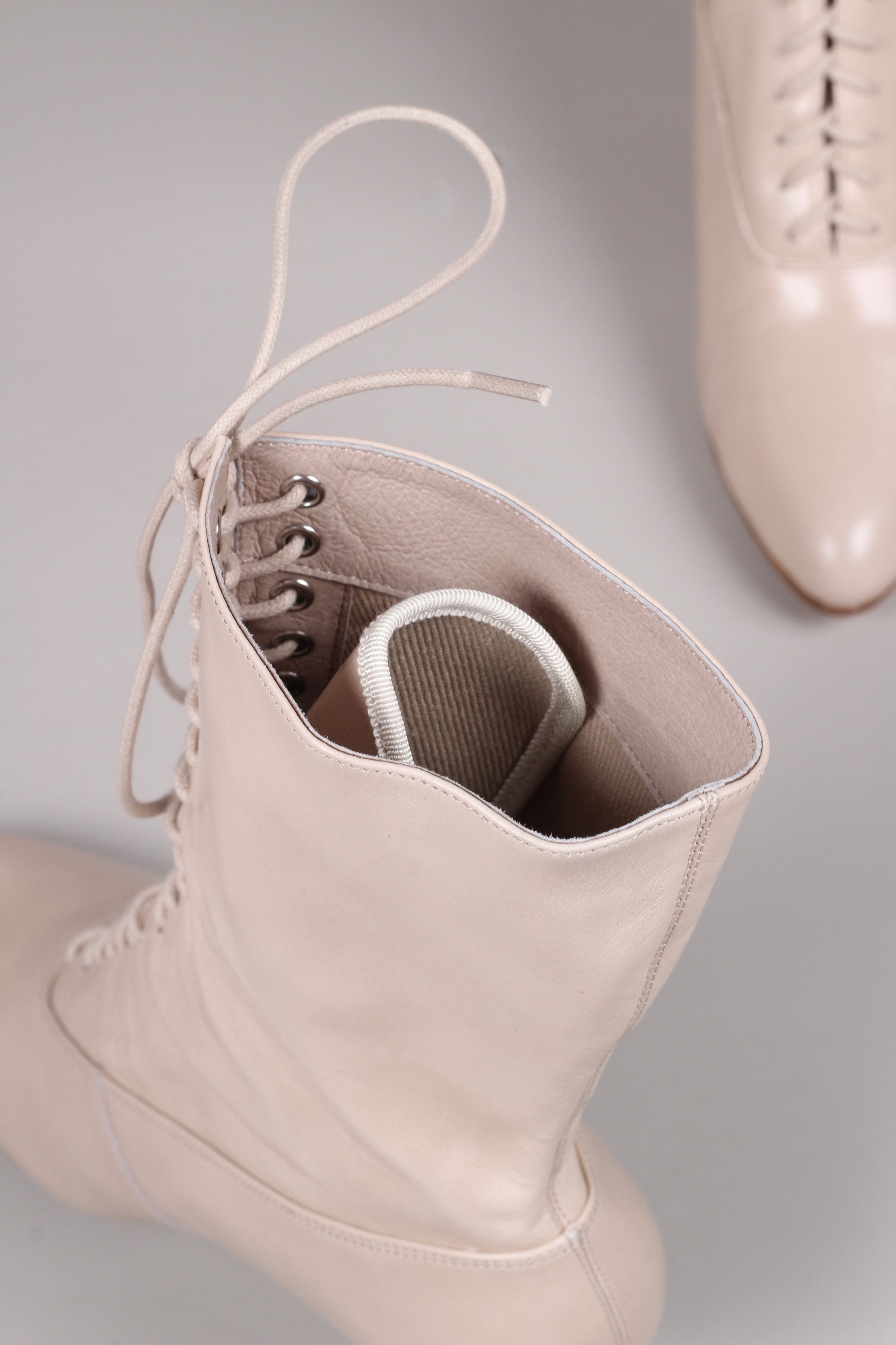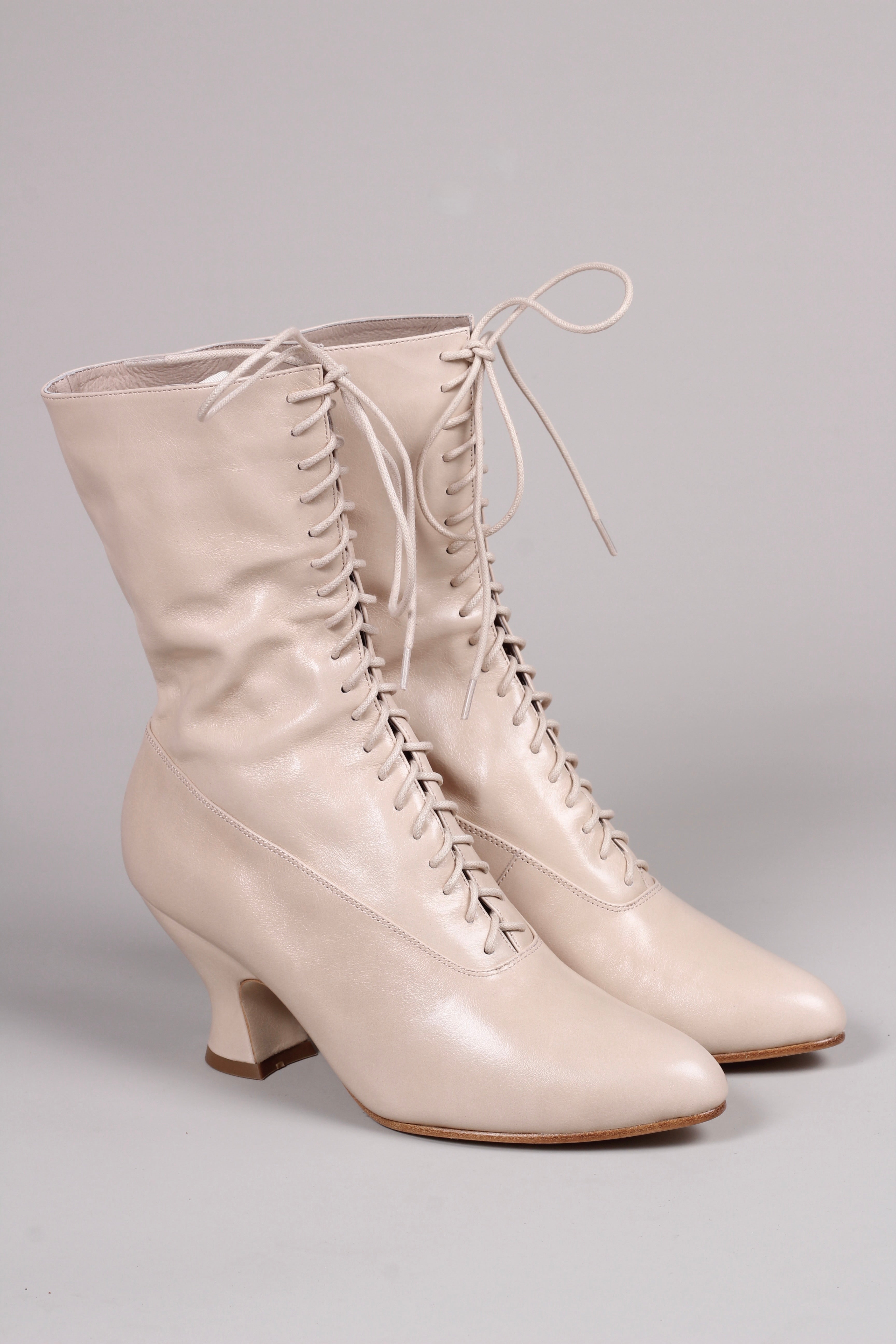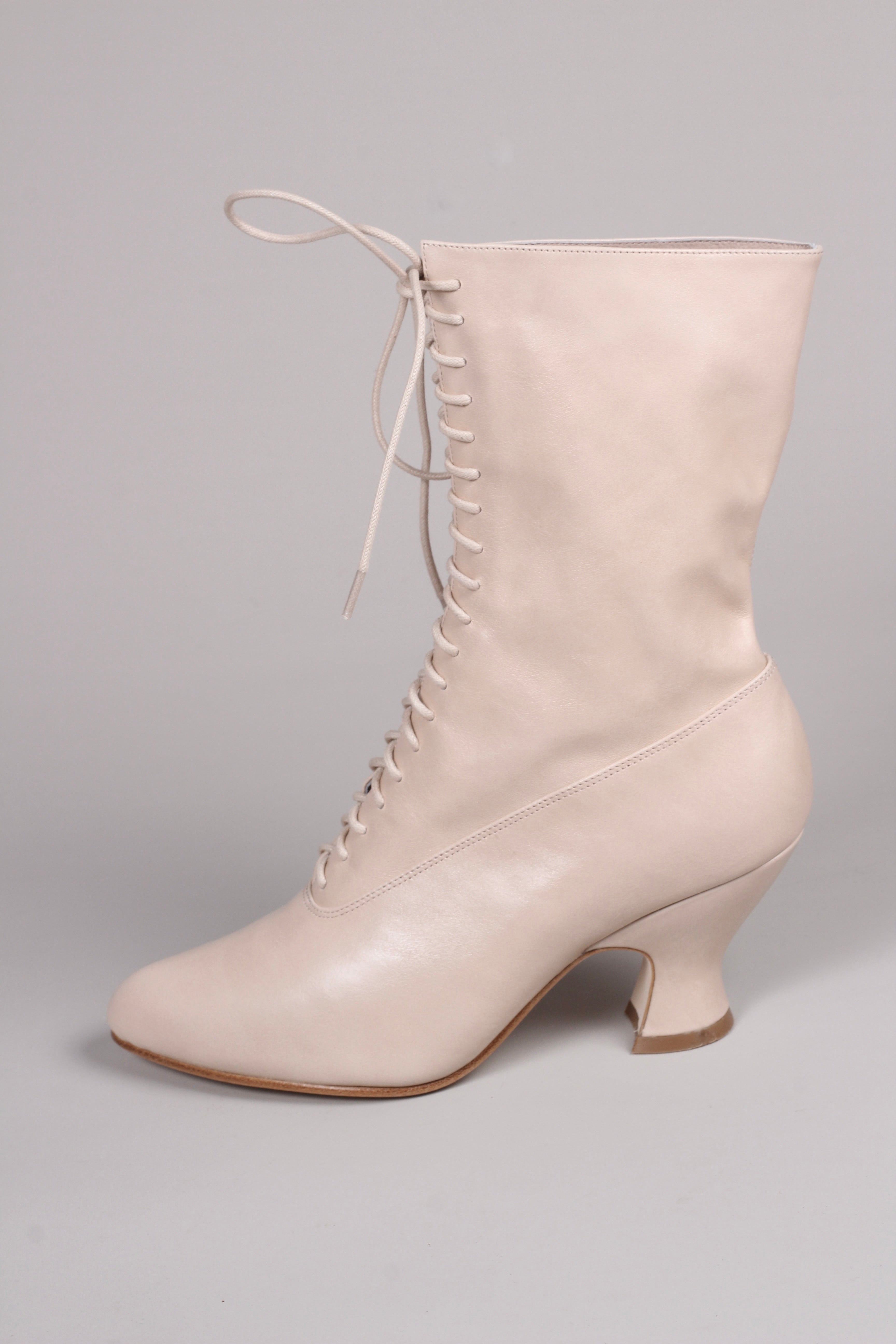 Edwardiansk snørestøvle med pompadour hæl, 1900-1915 - Cream - Rose