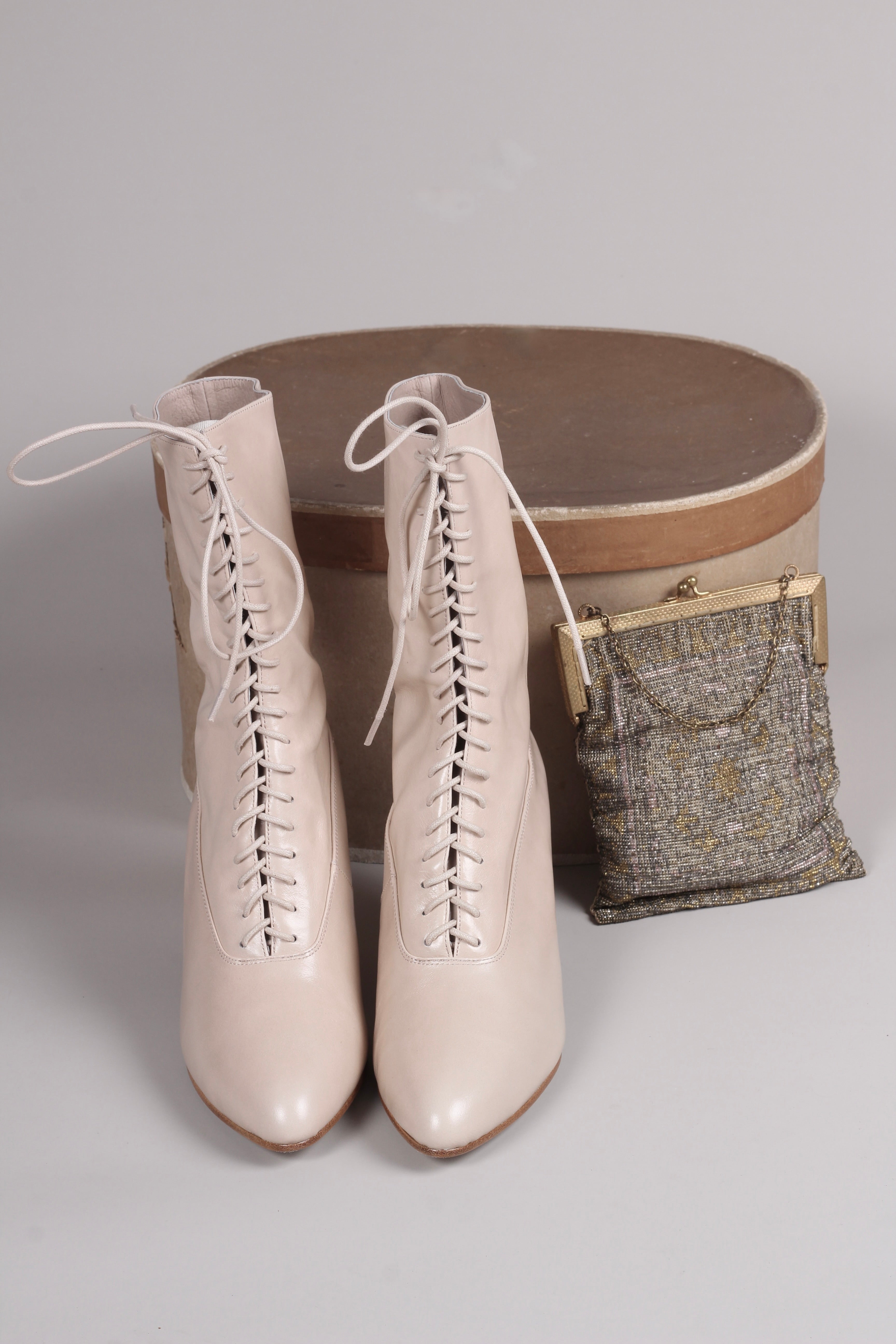 Feminine og elegante flotte Edwardianske snørestøvler med pompadour hæl.