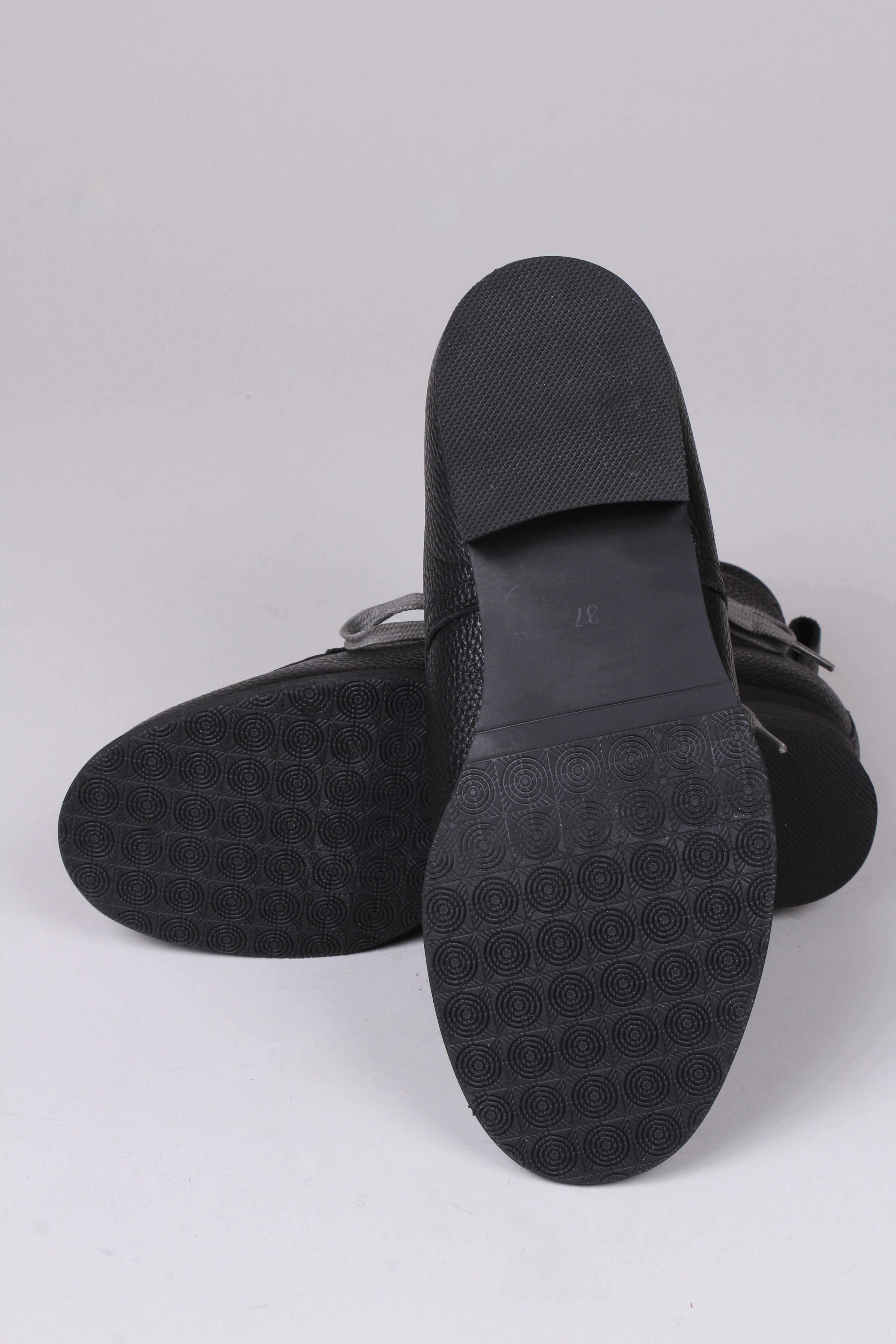 Materialer:  Læder, lammeskind, gummisåler, snørebånd af bomuld.