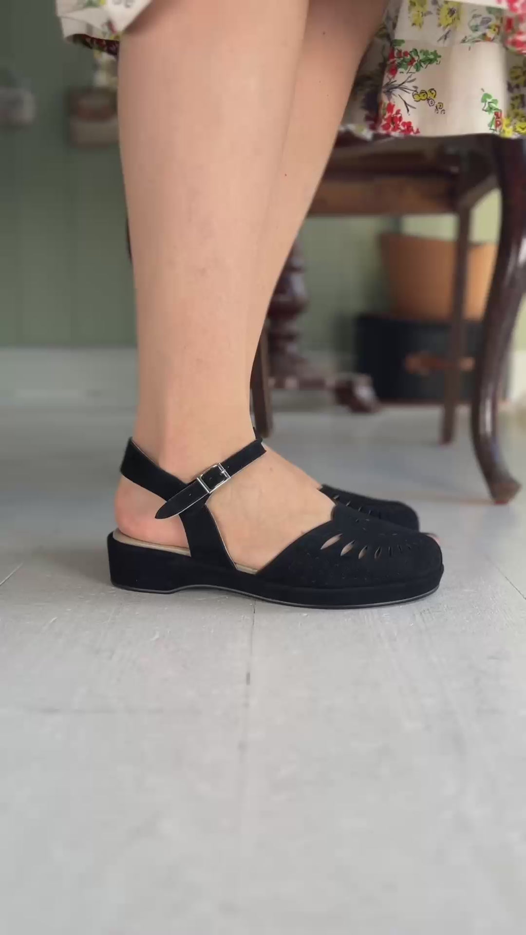 Fine 1940'er / 1950'er sandaler i ruskind- Sort - Ella