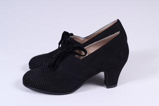1940'er vintage style Derby sko i ruskind med snøre - Lav hæl - Sort - Esther