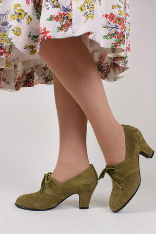 1940'er vintage style Derby sko i ruskind med snøre - Lav hæl - Sort - Esther
