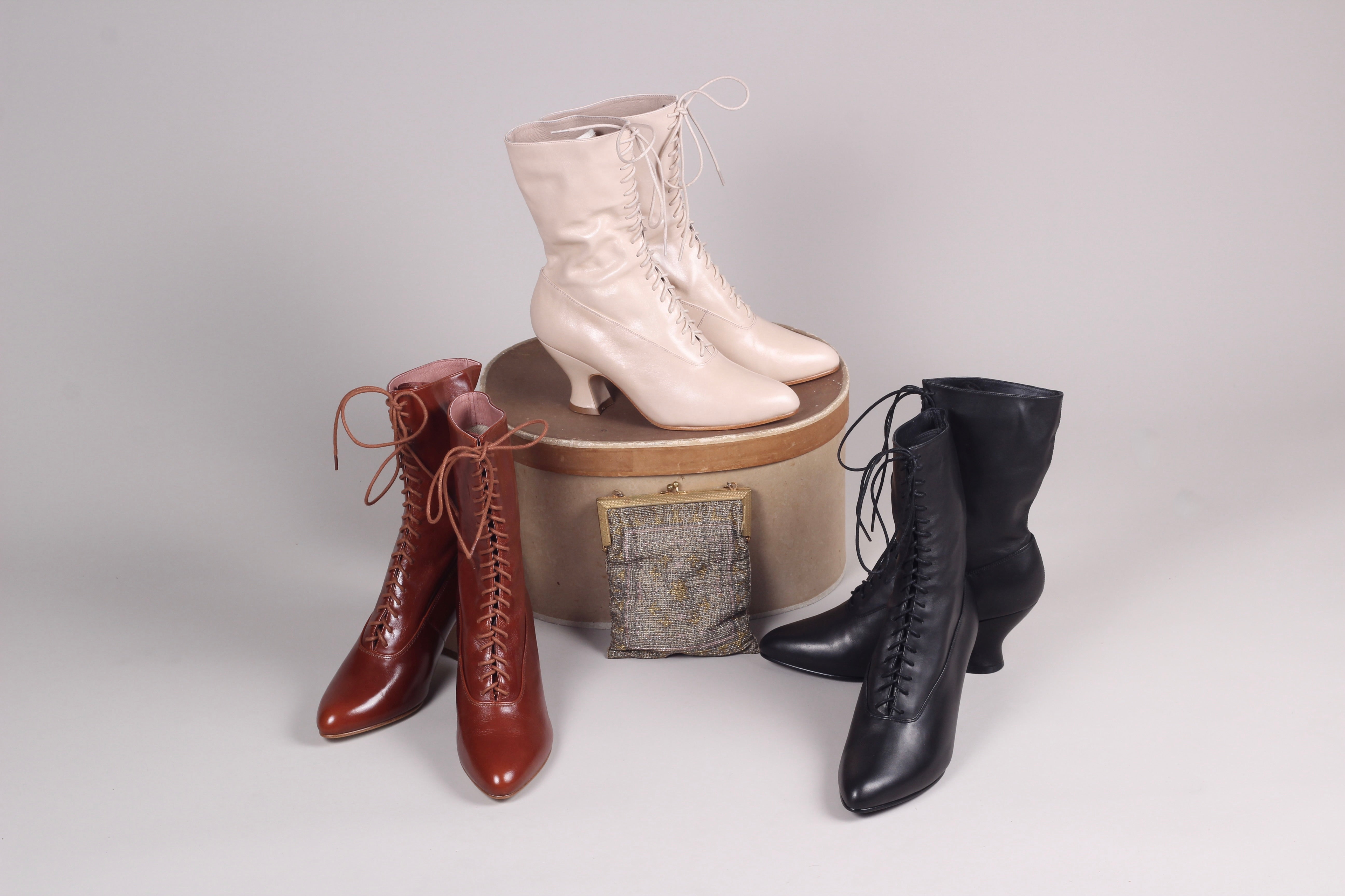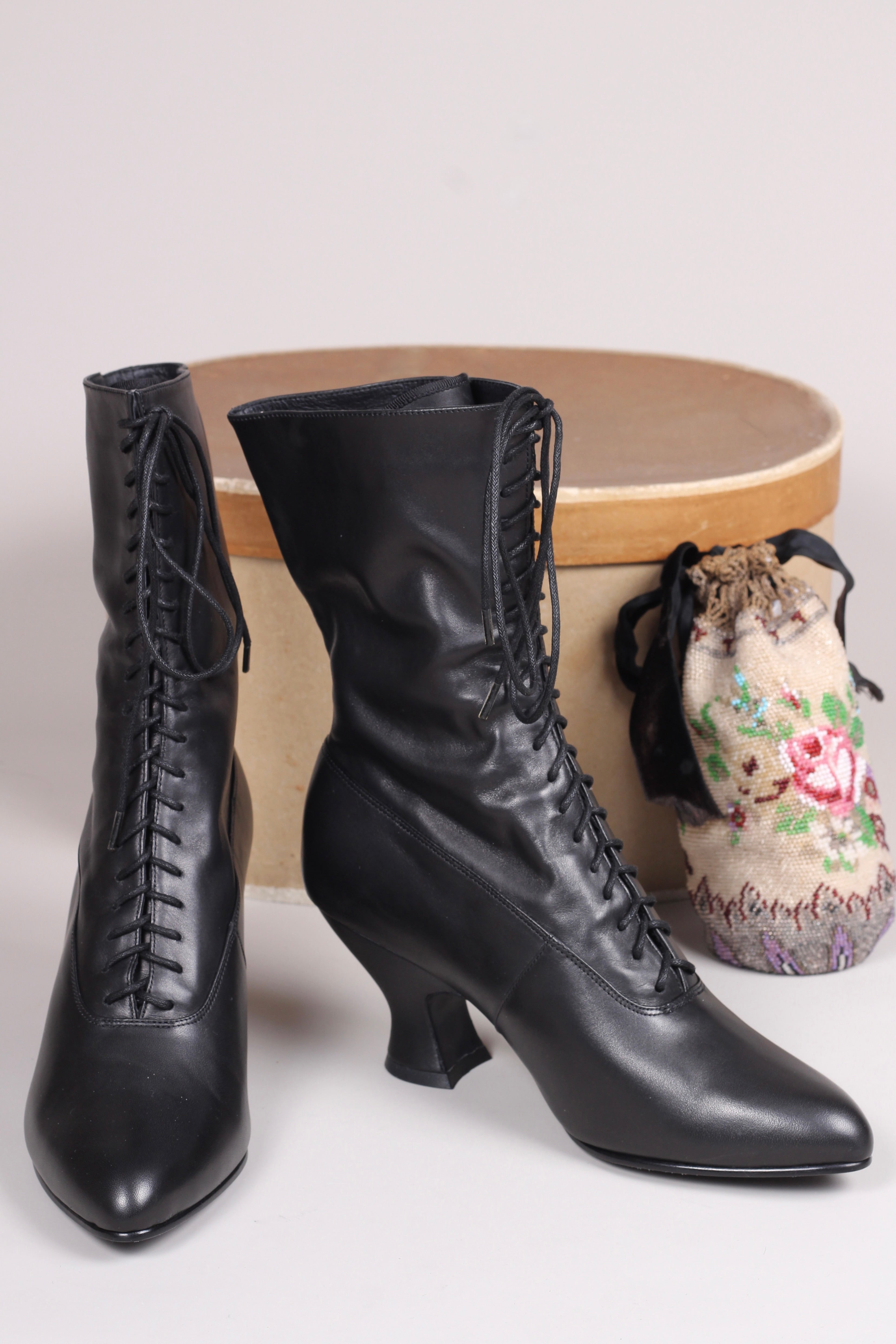 Feminine og elegante flotte Edwardianske snørestøvler med pompadour hæl.
