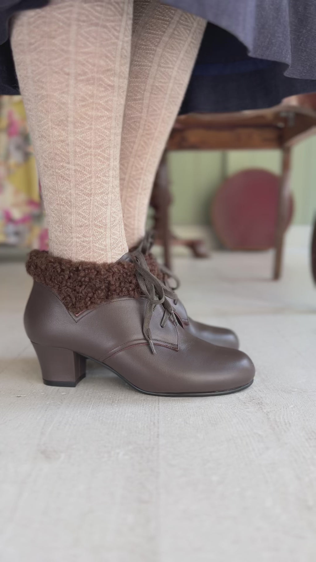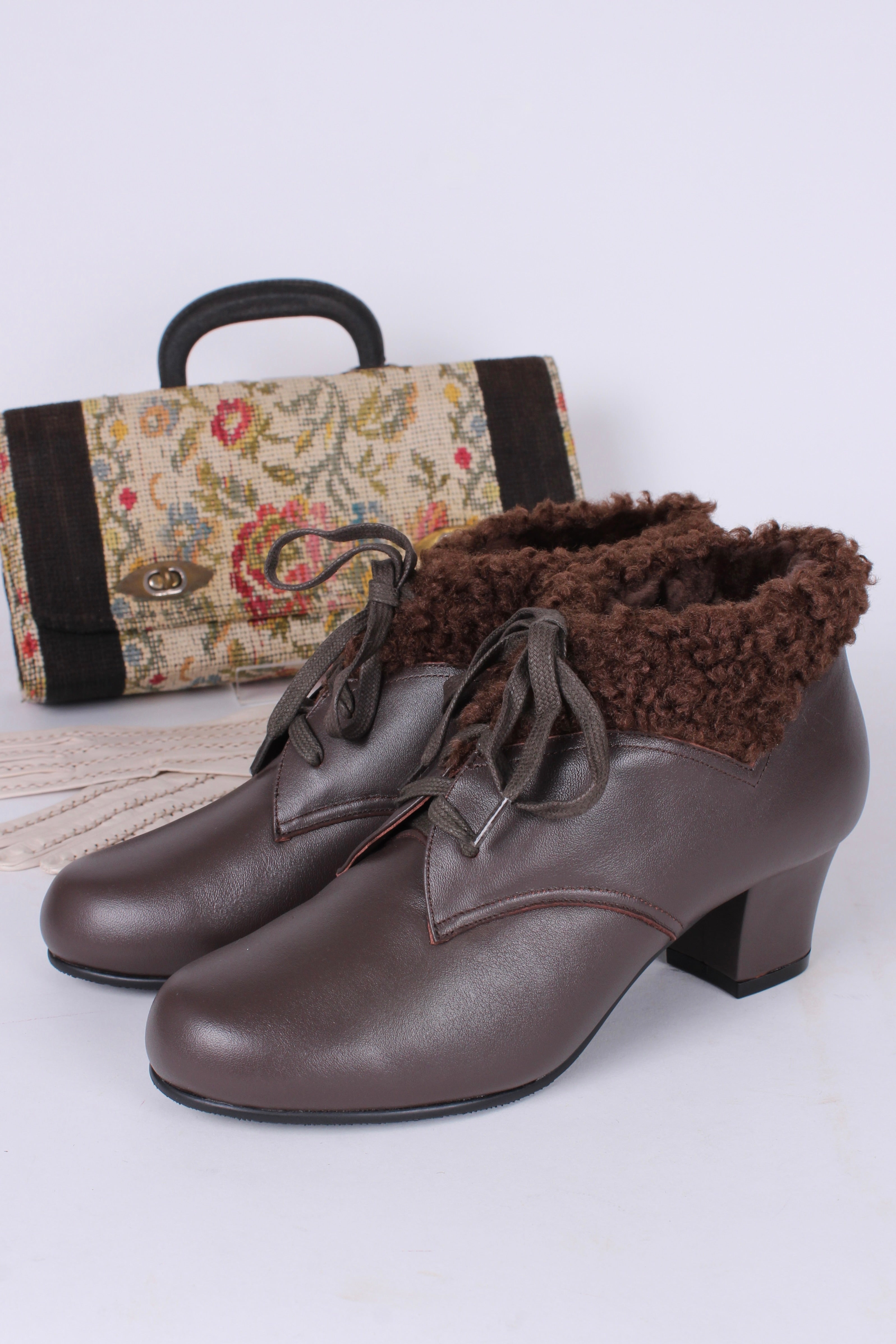 1940er / 1950er ankel snørestøvle med uldfoer - Mørkebrun - Karin