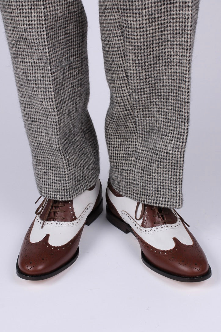 Klassiske 1930er Gangster oxfords i læder og nubuck - brun / off-white -Charles