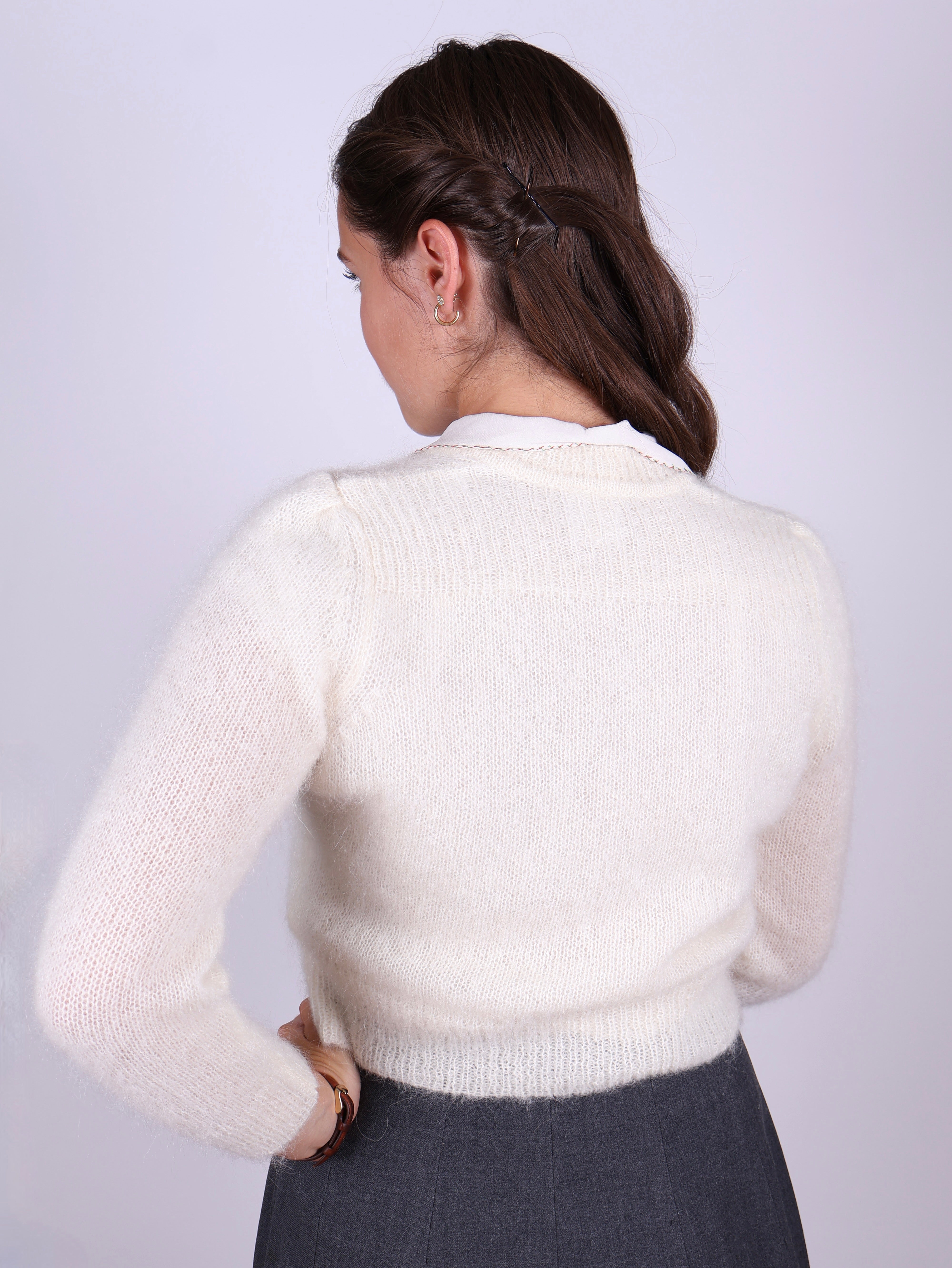 1940’er vintage style mohair cardigan med lille pufærme - Råhvid - Lisbeth