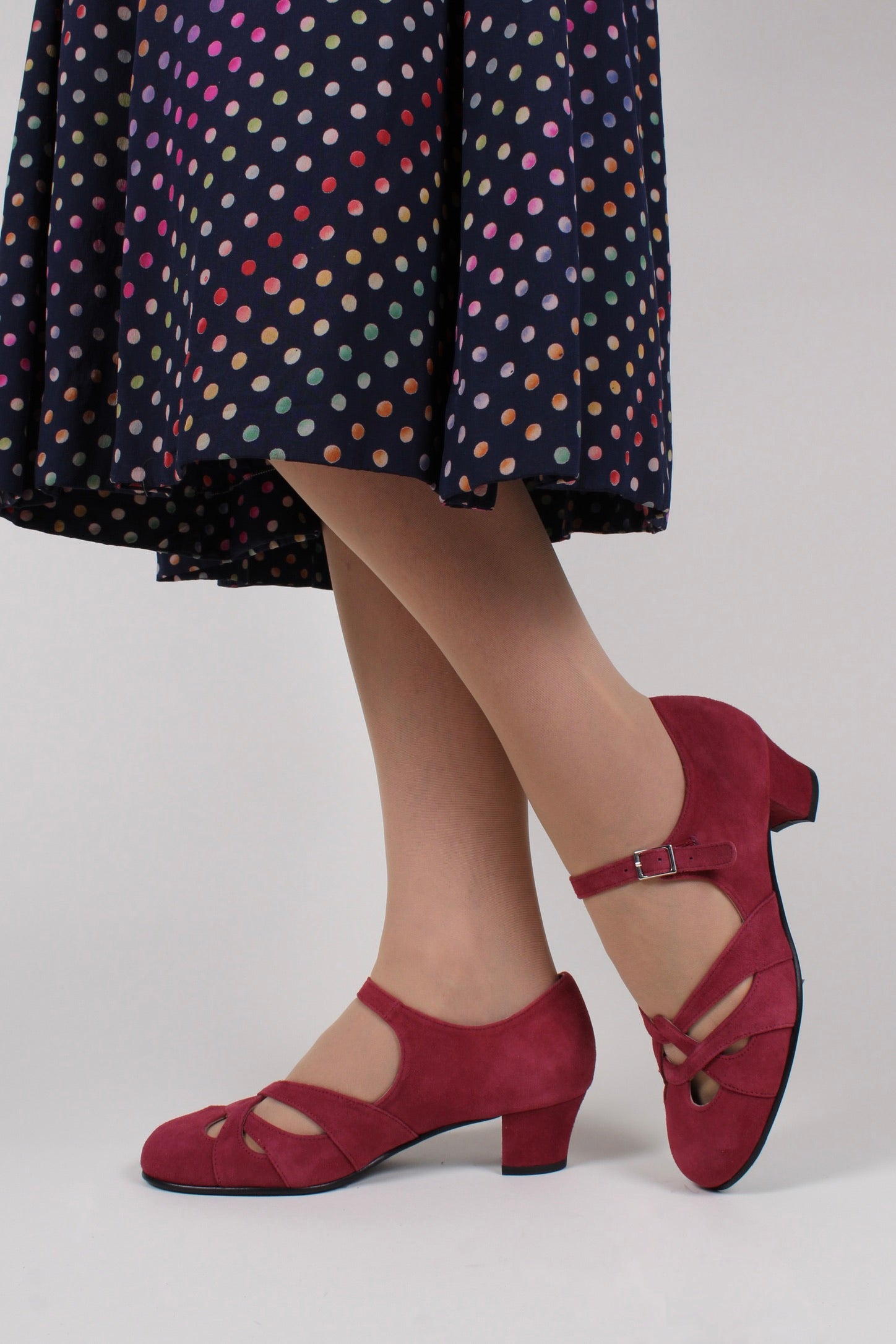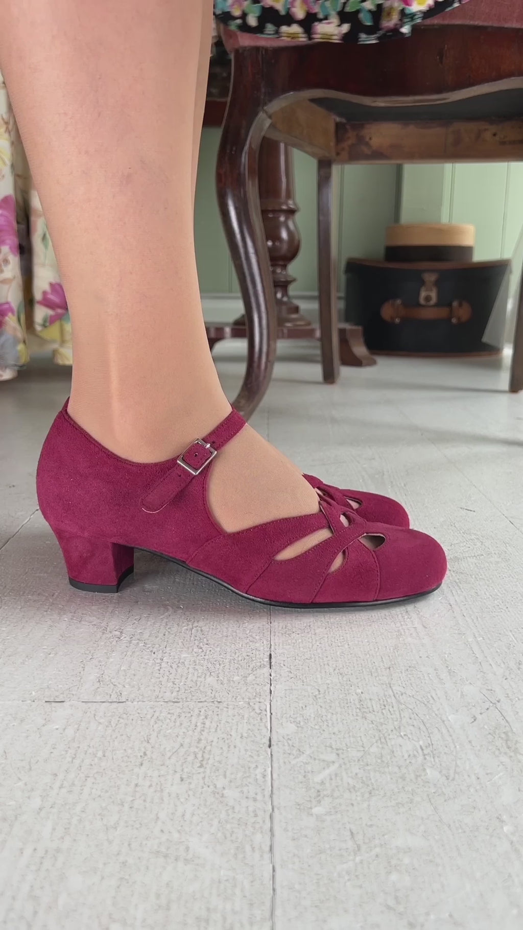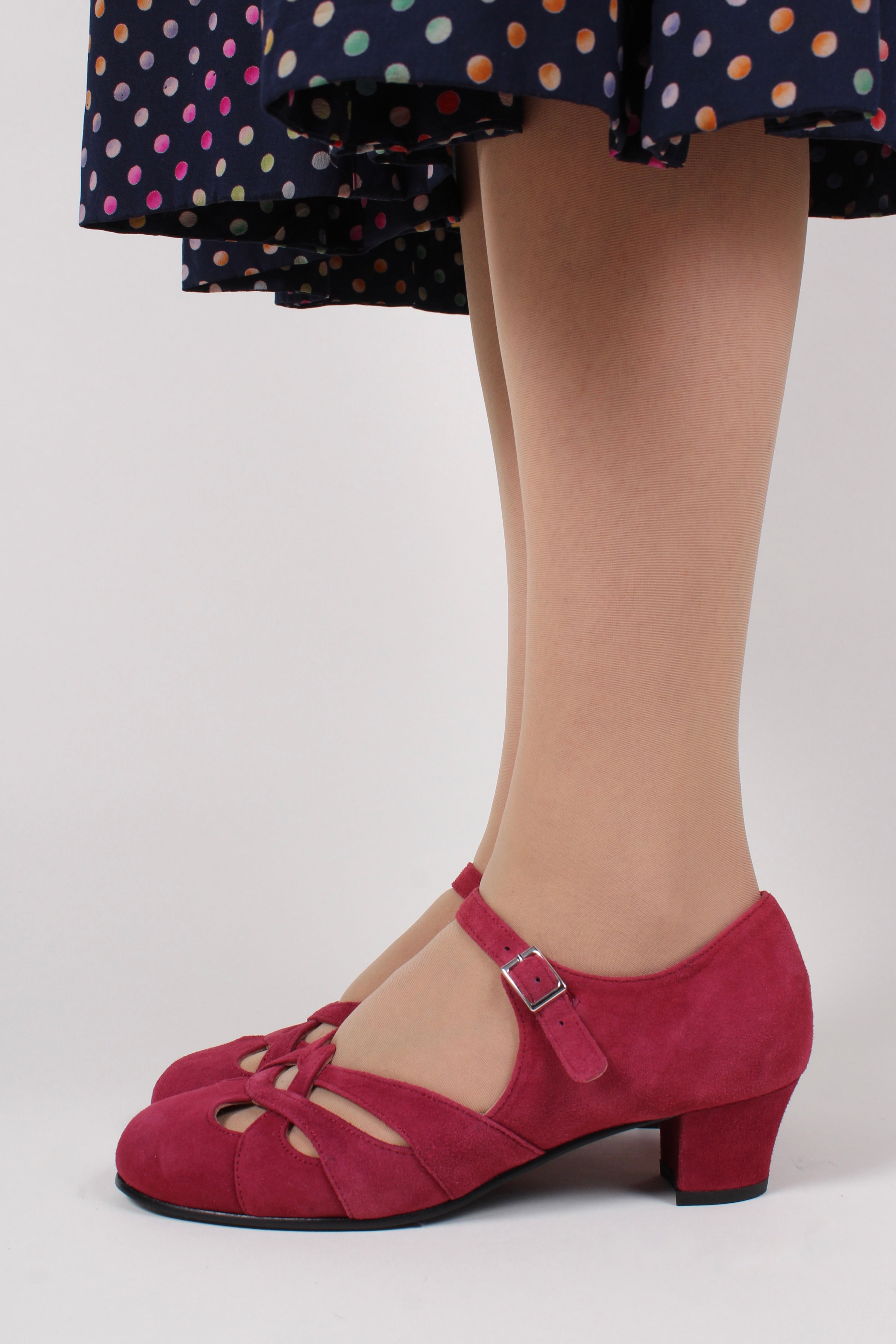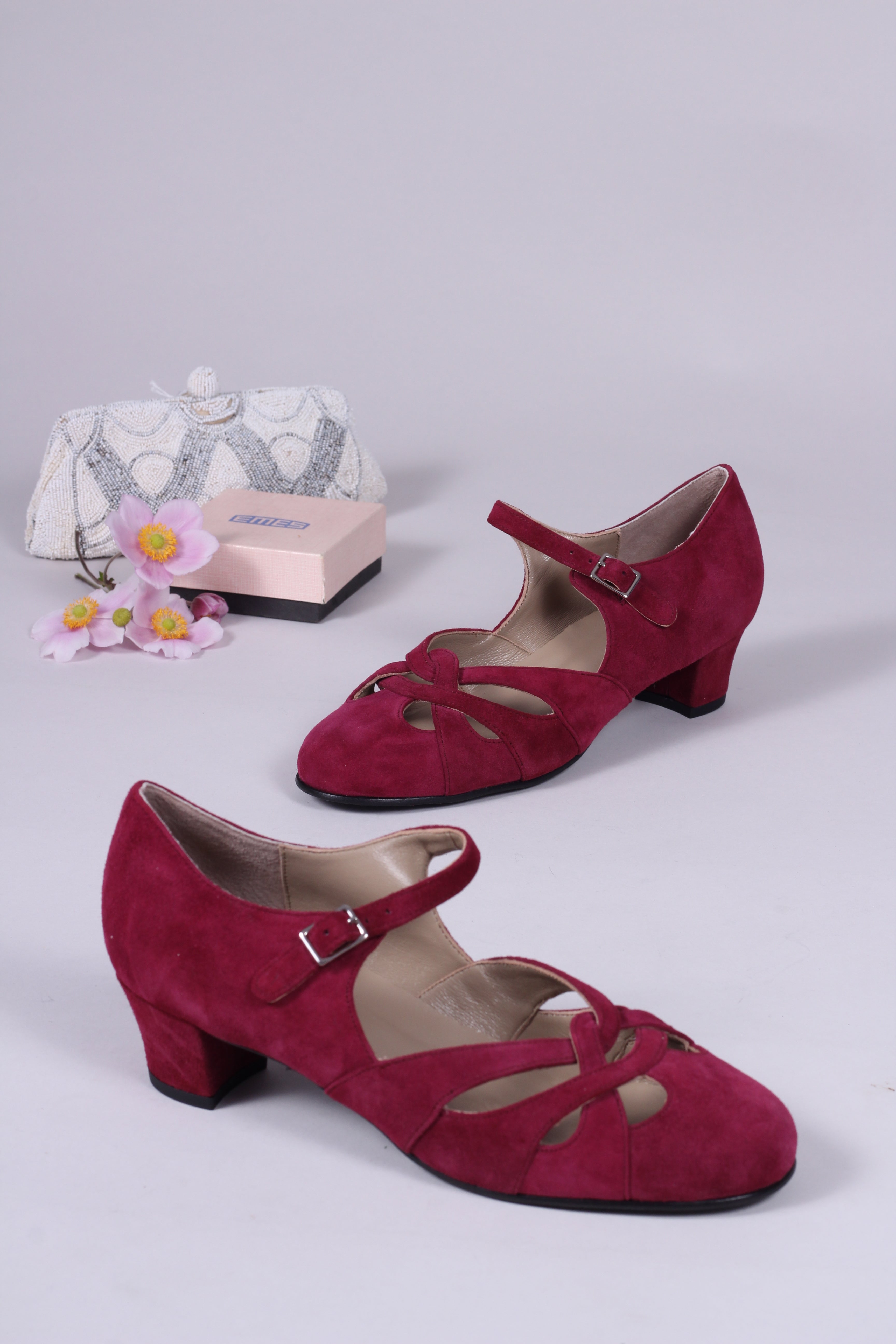 1930'er / 1940'er sko i ruskind - Ida- bordeaux rød - Ida