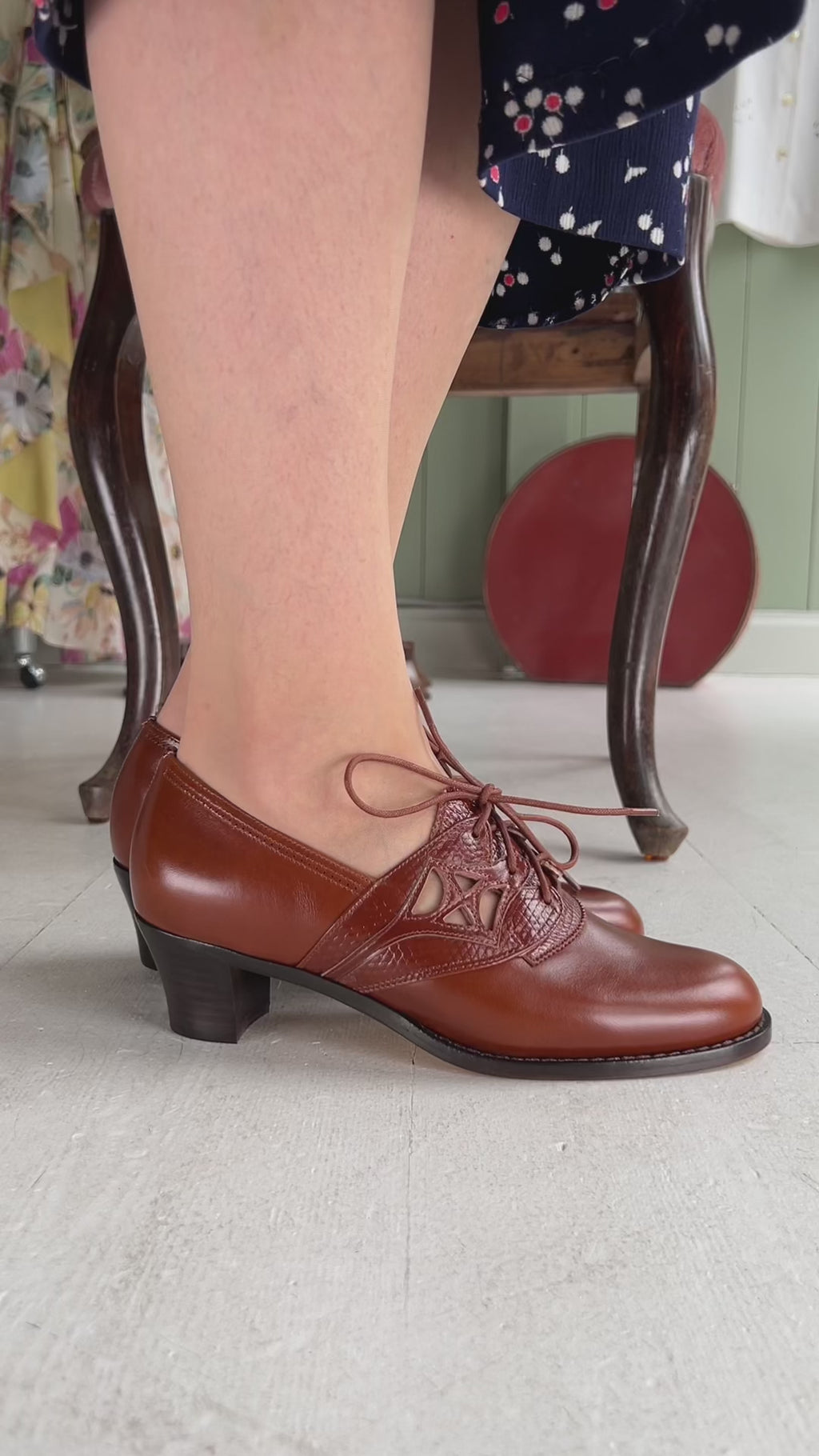 Fine 1940’er-inspirerede snøresko med udskåret mønster