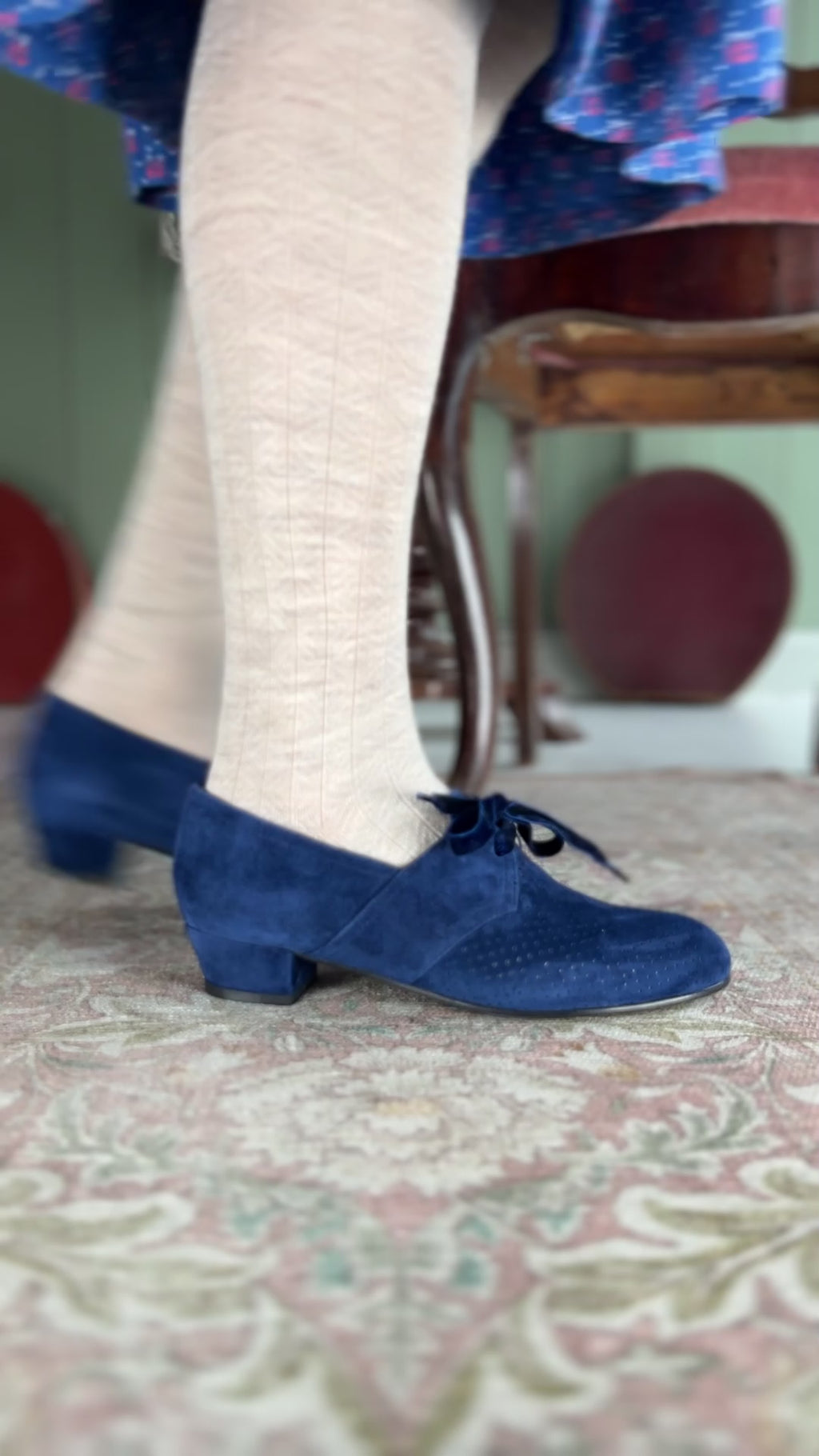 1940'er vintage style Derby sko i ruskind - Lav hæl - Navy blå - Esther