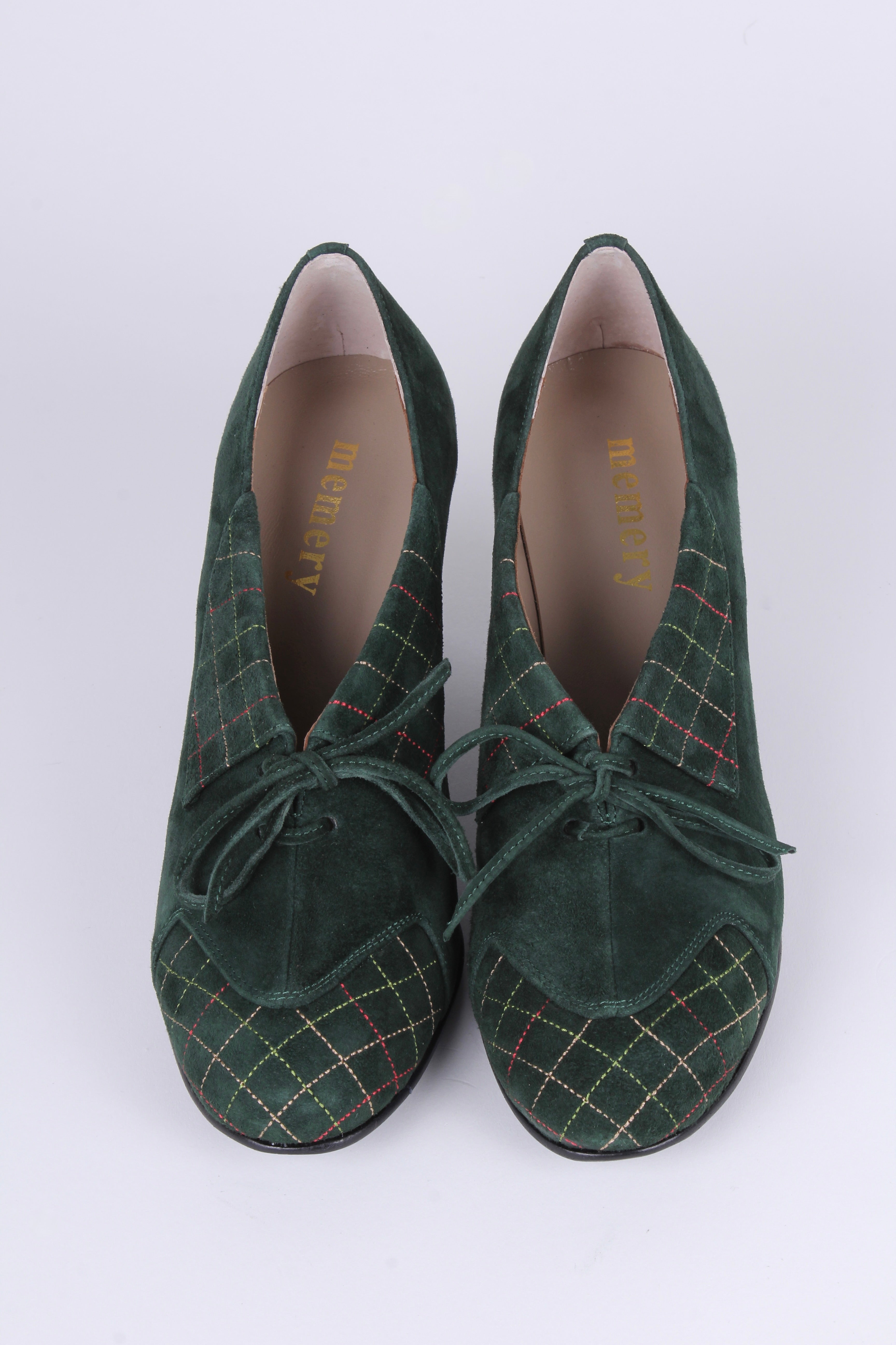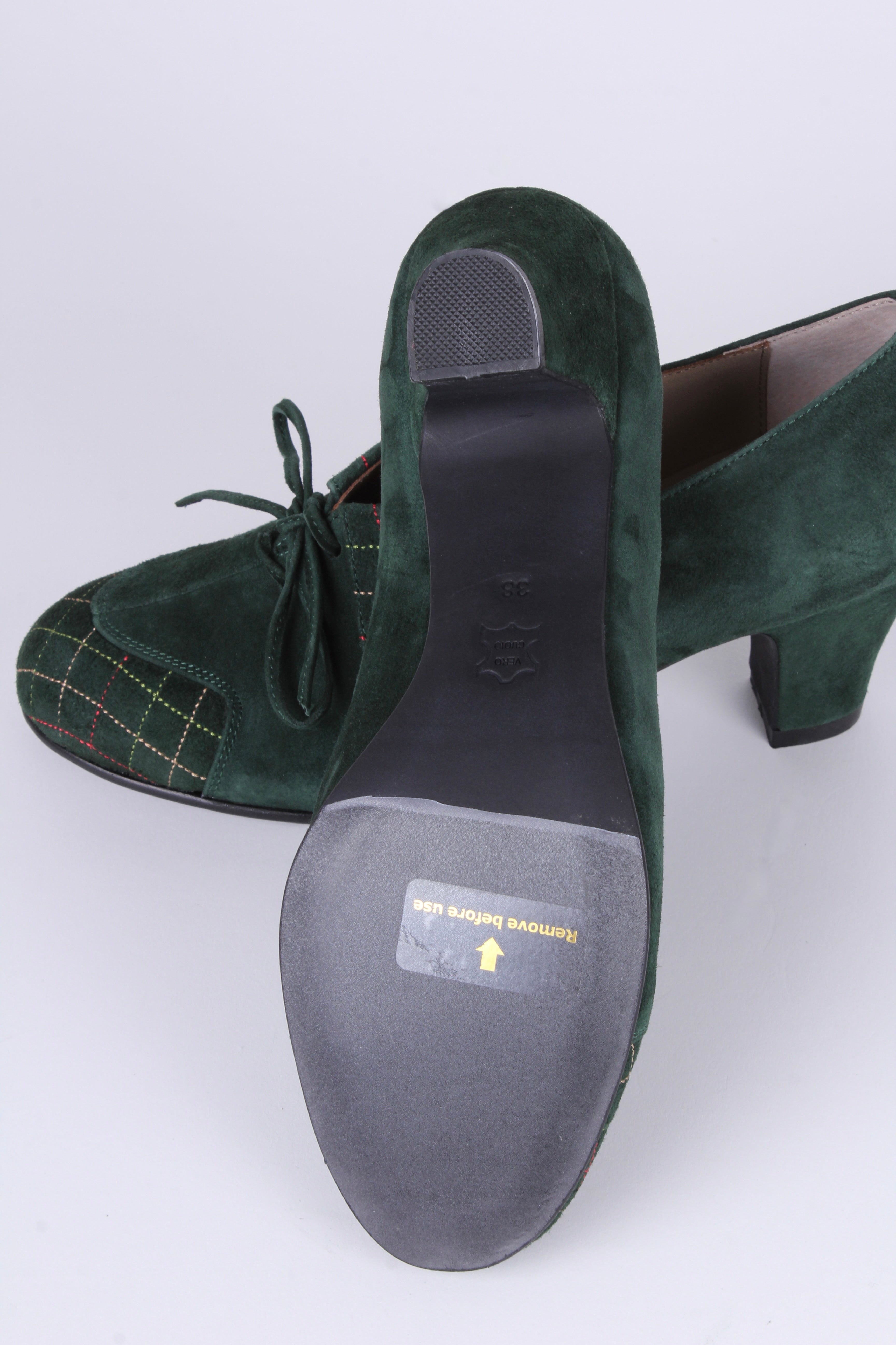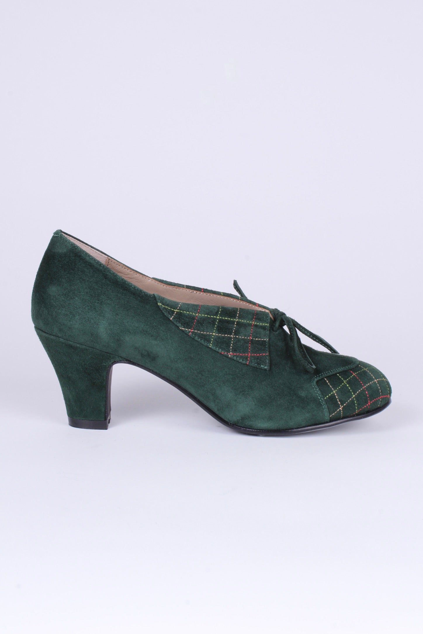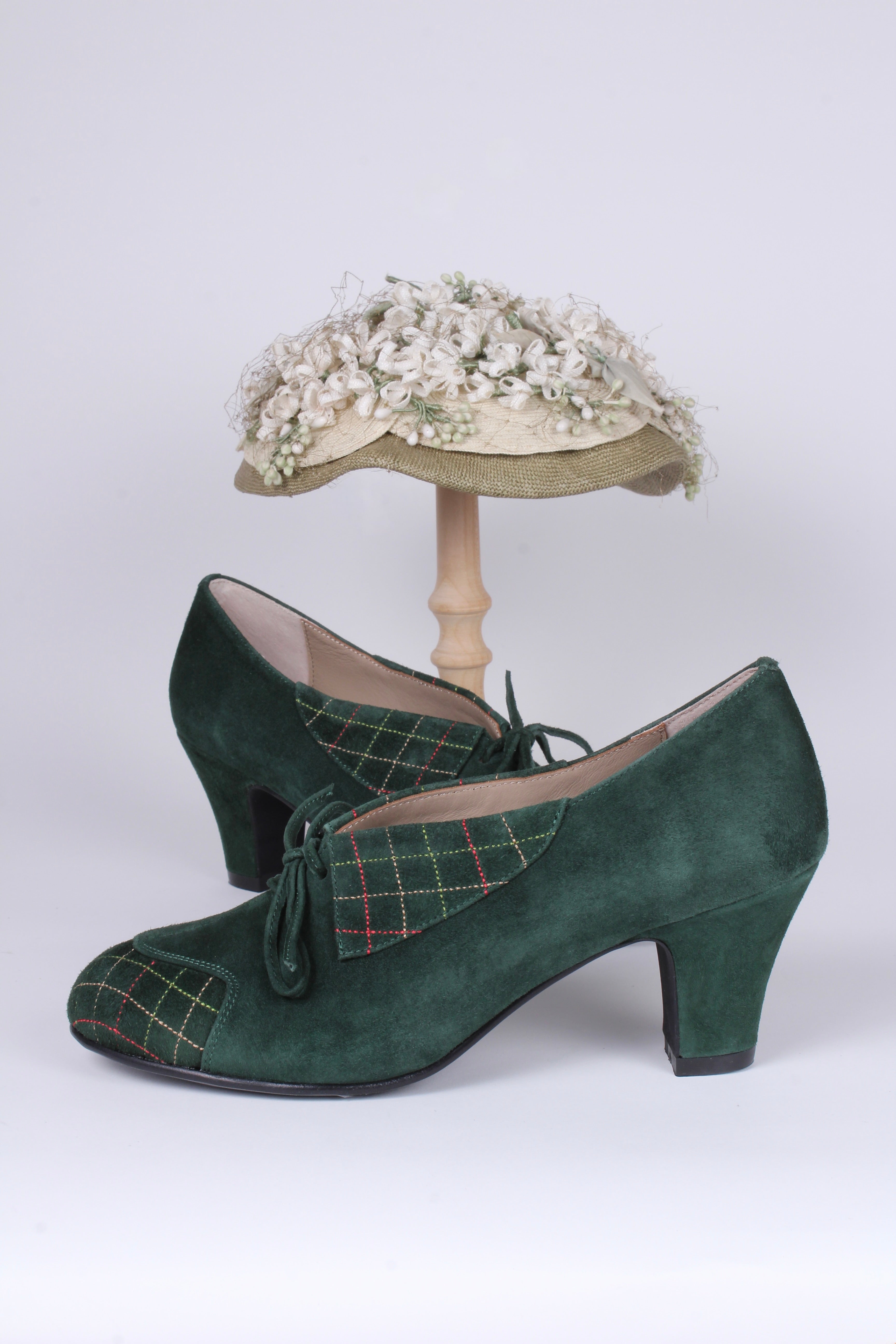 1940'er pumps i ruskind med flerfarvet syet mønster - Mørkegrøn - Edith