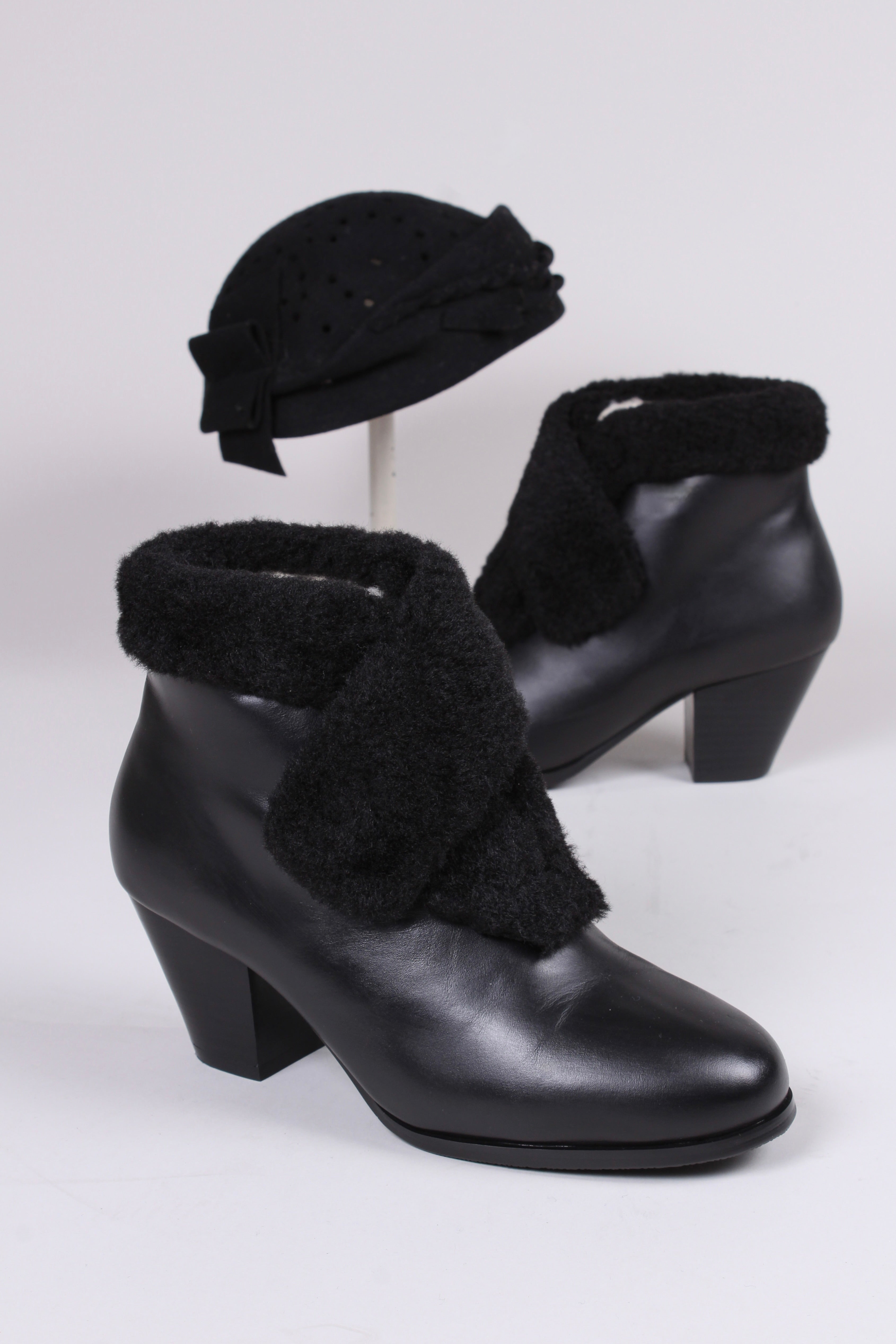 1940er / 1950er style støvletter med uld - Sort - Maria