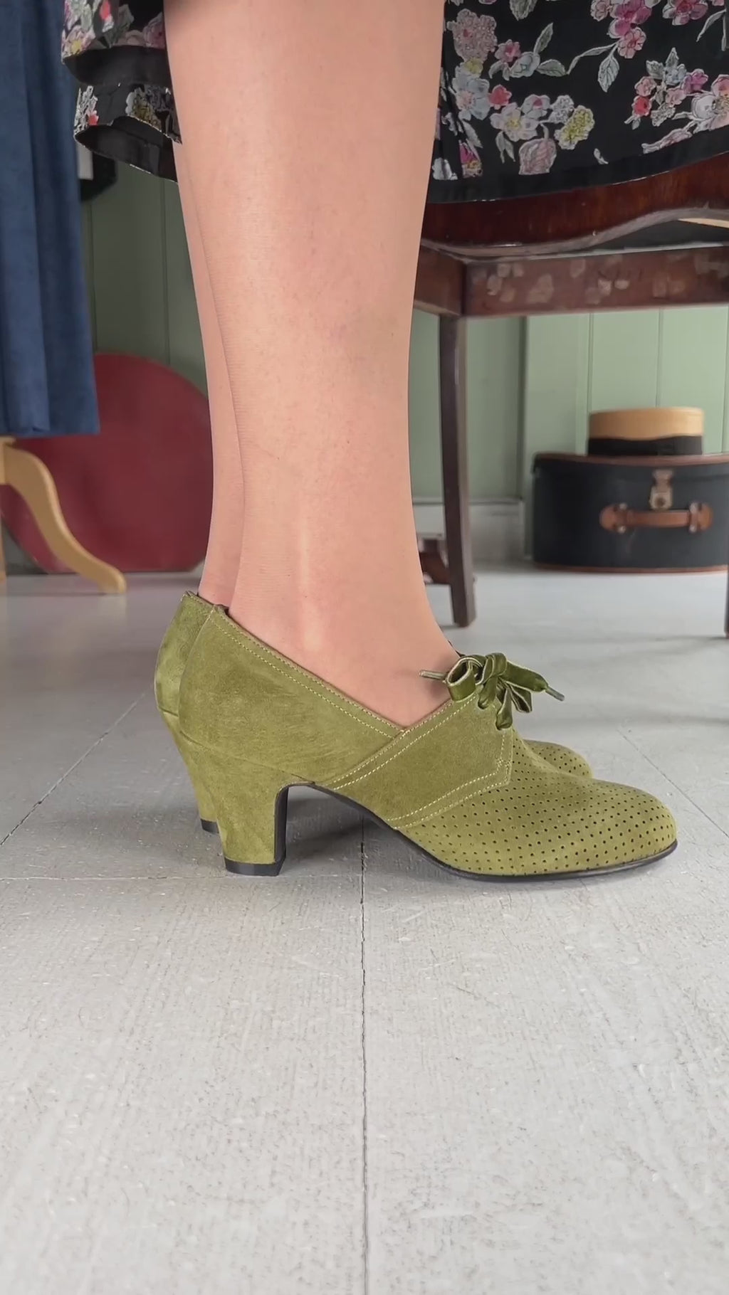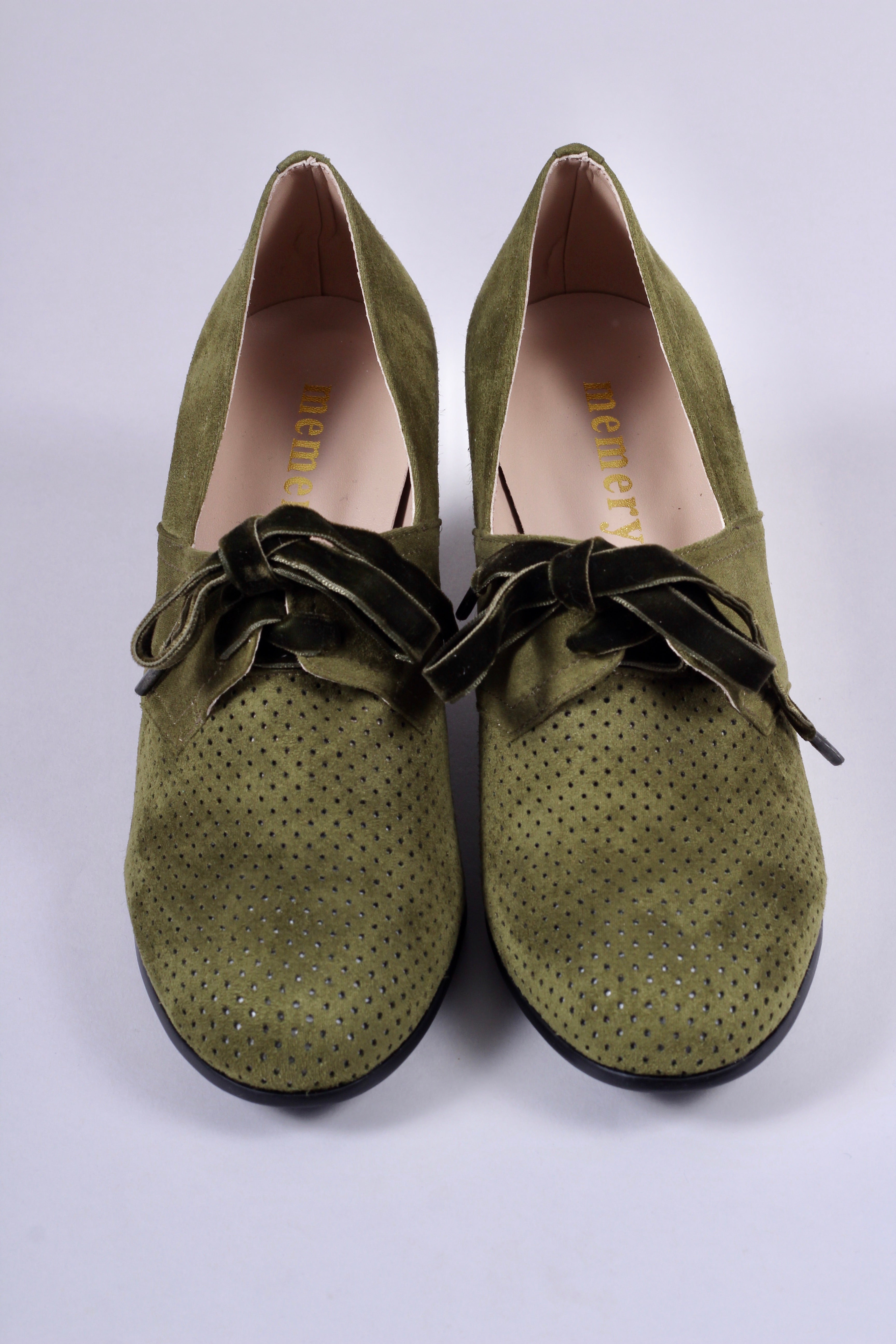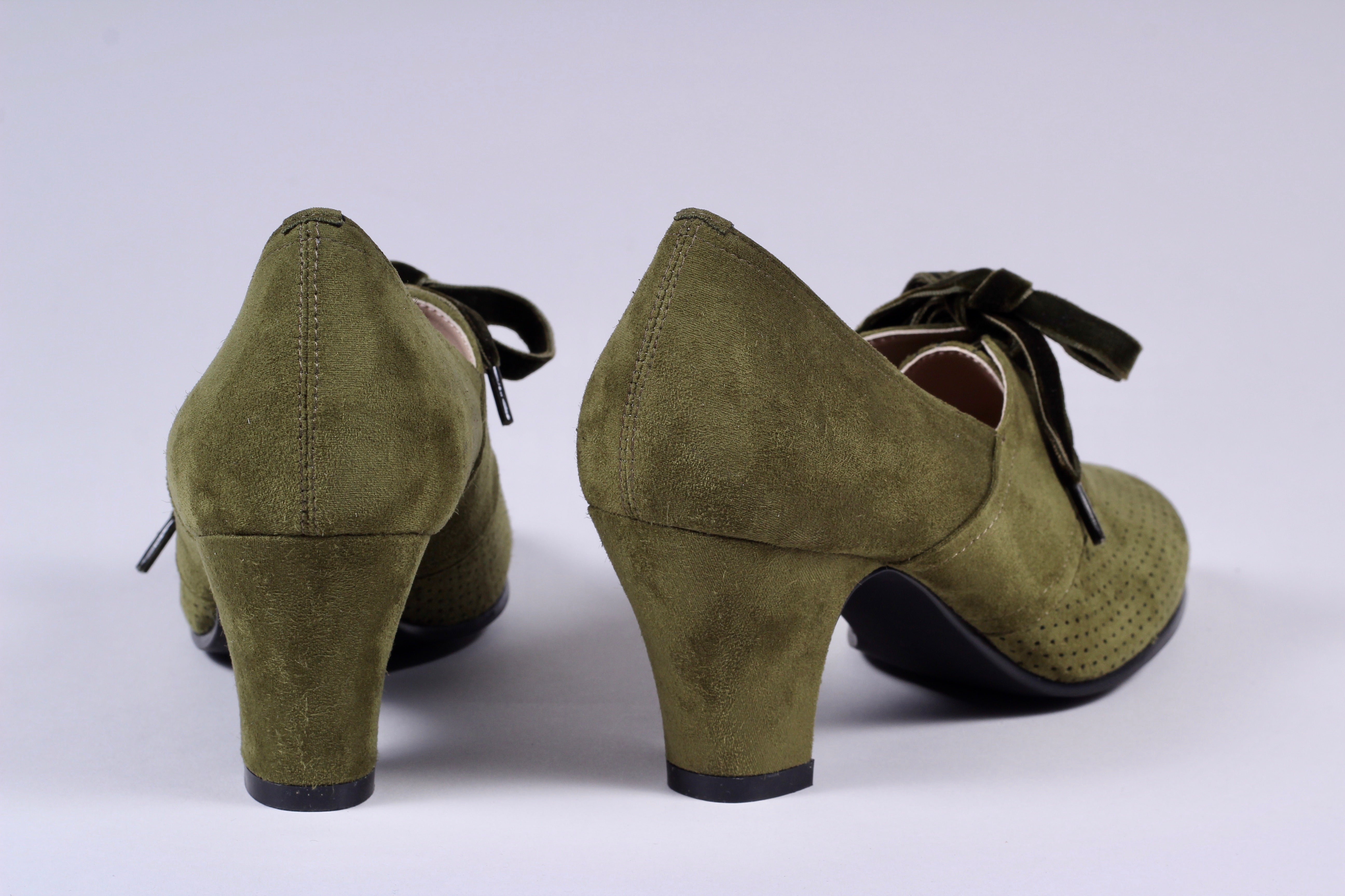 VEGAN - 1940'er vintage style pumps med snøre - Grøn - Esther