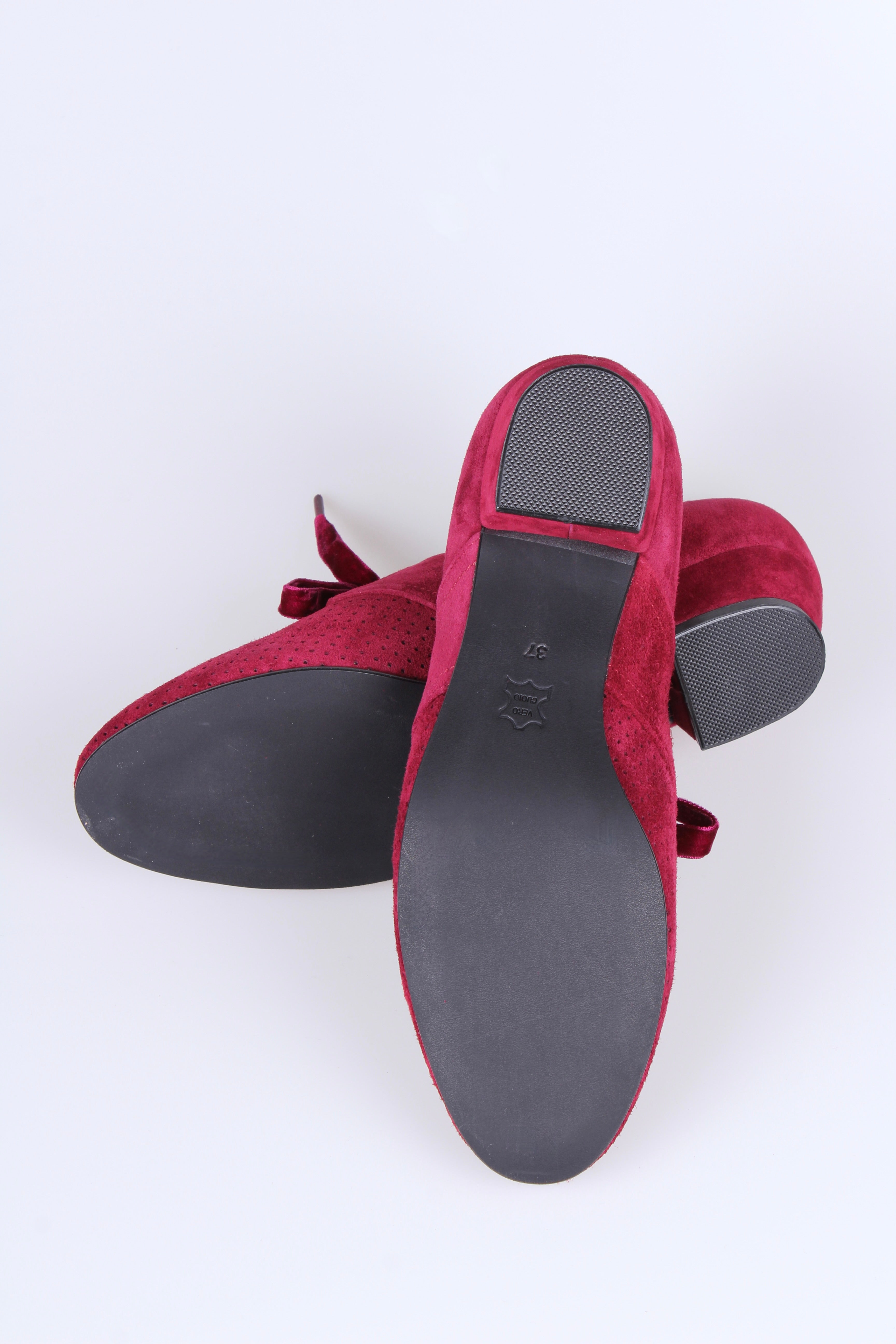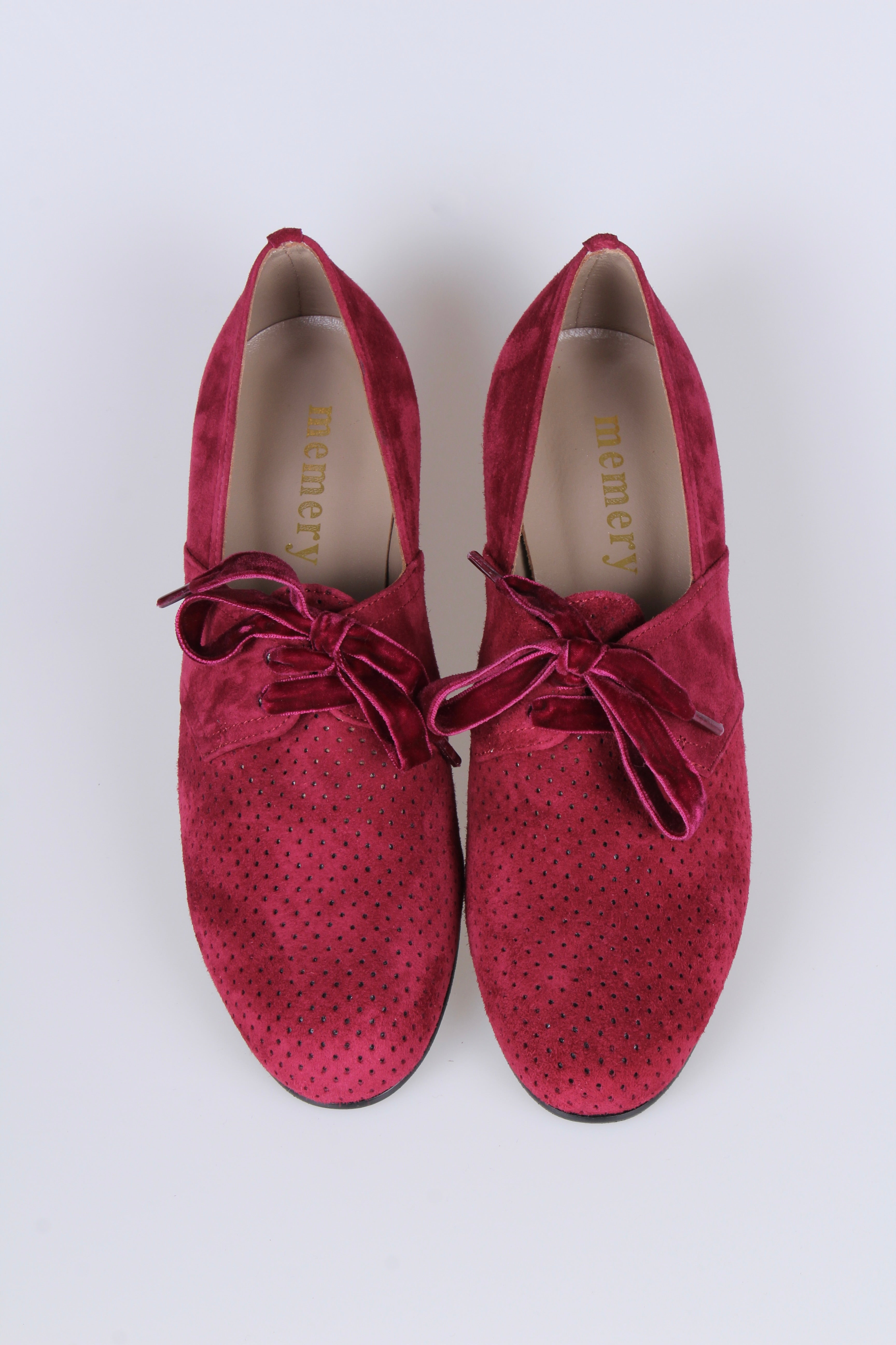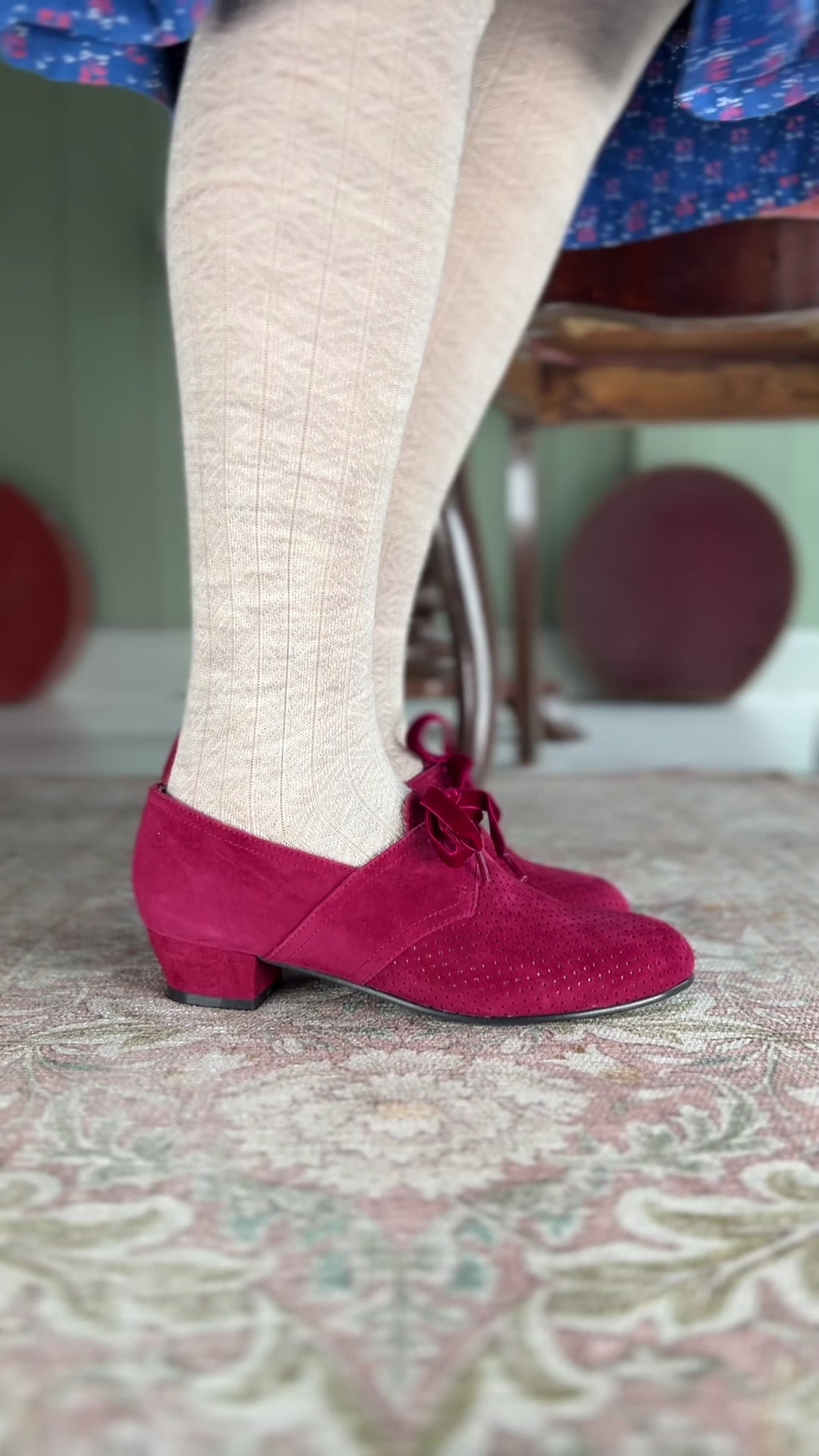 1940'er vintage style Derby sko i ruskind med snøre - Lav hæl - Bordeaux Rød - Esther